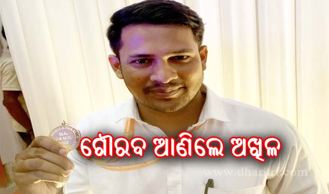 ବ୍ରହ୍ମପୁର ବିଶ୍ୱବିଦ୍ୟାଳୟରେ ୨୦୨୦-୨୦୨୨ ଶିକ୍ଷାବର୍ଷ ପାଇଁ ସାମ୍ବାଦିକତା ଓ ଗଣଯୋଗାଯୋଗ ସ୍ନାତକୋତ୍ତର ଶୀର୍ଷସ୍ଥାନ(ଟପ୍ପର) ହାସଲ କରିଛନ୍ତି। ଏନେଇ ବୁଧବାର ୨୪ତମ ସମାବର୍ତ୍ତନ ଉତ୍ସବରେ କୁଳାଧିପତି ତଥା ରାଜ୍ୟପାଳ ପ୍ରଫେସର ଗଣେଶୀ ଲାଲ୍ ଯୋଗଦେଇ ସ୍ବର୍ଣ୍ଣପଦକ ପ୍ରଦାନ କରିଥିଲେ। ଏହି ଉତ୍ସବରେ ଅନ୍ୟମାନଙ୍କ ମଧ୍ୟରେ କୁଳପତି ଡ. ଗୀତାଞ୍ଜଳି ଦାସ,କୁଳସଚିବ ସଚିଦାନନ୍ଦ ନାୟକ, ପିଜି କାଉନସିଲର ଅଧ୍ୟକ୍ଷ ପ୍ରତାପ କୁମାର ମହାନ୍ତି ପ୍ରମୁଖ ଉପସ୍ଥିତ ଥିଲେ। ଏହି ସଫଳତା ପାଇଁ ଅଖିଳଙ୍କୁ ବିଭିନ୍ନ ମହଲରୁ ଶୁଭେଚ୍ଛାର ଛୁଟିଛି। ଅଖିଳ ଏହି ସଫଳତା ପାଇଁ ଆବଶ୍ୟକ ପରିଶ୍ରମ ସହ ଭଗବାନଙ୍କ ଆଶୀର୍ବାଦ ଏବଂ ବିଭାଗ ମୁଖ୍ୟ ପ୍ରଫେସର ଡ଼.ଗଣେଶ ସେଠୀଙ୍କ ସହ ଅନ୍ୟ ଅଧ୍ୟାପକମାନଙ୍କୁ ଶ୍ରେୟ ଦେଇଛନ୍ତି। ଭବିଷ୍ୟତରେ ଜଣେ ନିର୍ଭୀକ ଓ ନିଷ୍ଠାପର ସାମ୍ବାଦିକ ହୋଇ ଲୋକଙ୍କ ପାଇଁ ସ୍ବର ହେବି ବୋଲି କହିଛନ୍ତି।