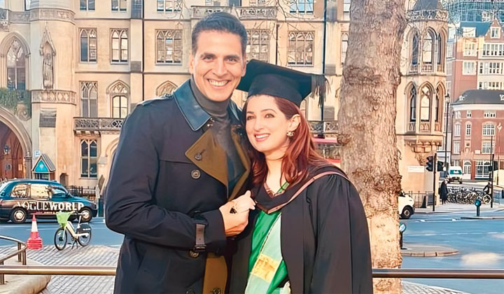 ଅକ୍ଷୟ କୁମାର ନିକଟରେ ତାଙ୍କ ଅଫିସିଆଲ ଇନଷ୍ଟାଗ୍ରାମ ଆକାଉଣ୍ଟରେ ଏକ ଫଟୋ ଶେୟାର କରିଛନ୍ତି। ଯେଉଁଥିରେ ସେ ତାଙ୍କ ପତ୍ନୀଙ୍କ ସହ ନଜର ଆସିଛନ୍ତି। ଏହି ଫଟୋରେ ଟ୍ବିଙ୍କଲ ସ୍ନାତକୋତ୍ତର କୋଟ ଏବଂ କ୍ୟାପ ପିନ୍ଧିଛନ୍ତି ଏବଂ ସବୁଜ ରଙ୍ଗର ଶାଢି ପିନ୍ଧିଛନ୍ତି । ଏହା ବ୍ୟତୀତ ଅକ୍ଷୟ କୁମାରଙ୍କୁ କଳା ପ୍ୟାଣ୍ଟ ଏବଂ ଓଭରକୋଟରେ ଦେଖିବାକୁ ମିଳିଛି। ଏହି ଫଟୋ ଶେୟାର କରି ଅକ୍ଷୟ କୁମାର ଲେଖିଛନ୍ତି, ୨ ବର୍ଷ ପୂର୍ବେ ଯେତେବେଳେ ତୁମେ ମୋତେ କହିଥିଲ ଯେ ତୁମେ ପୁଣି ଅଧ୍ୟୟନ କରିବାକୁ ଚାହୁଁଛ, ମୁଁ ଆଶ୍ଚର୍ଯ୍ୟ ହୋଇଗଲି, କିନ୍ତୁ ଯେଉଁ ଦିନ ମୁଁ ତୁମକୁ ଏତେ ପରିଶ୍ରମ କରୁଥିବାର ଦେଖିଲି, ମୁଁ ଅନୁଭବ କଲି ଯେ ମୁଁ ଏକ ସୁପର ମହିଳାଙ୍କୁ ବାହା ହୋଇଛି। ତୁମେ ନିଜ ଘର, କ୍ୟାରିୟର ଏବଂ ପିଲାମାନଙ୍କ ସହିତ ଜଣେ ଛାତ୍ରଙ୍କ ଜୀବନକୁ ପରିଚାଳନା କରିଛ, ଆଜି ତୁମର ସ୍ନାତକୋତ୍ତର ଦିନରେ ମୁଁ ଇଚ୍ଛା କରେ ମୁଁ ଟିକିଏ ଅଧିକ ଅଧ୍ୟୟନ କରିଥା’ନ୍ତି କି, ଯାହାଫଳରେ ମୁଁ ଏତେଗୁଡ଼ିଏ ଶବ୍ଦ ମିଳିଥାନ୍ତା ଏବଂ ମୁଁ ତୁମକୁ କହିପାରନ୍ତି କି ତୁମକୁ ନେଇ ମୁଁ କେତେ ଗର୍ବିତ, ଟିନା ଅଭିନନ୍ଦନ ଏବଂ ମୁଁ ତୁମକୁ ଭଲ ପାଏ ।