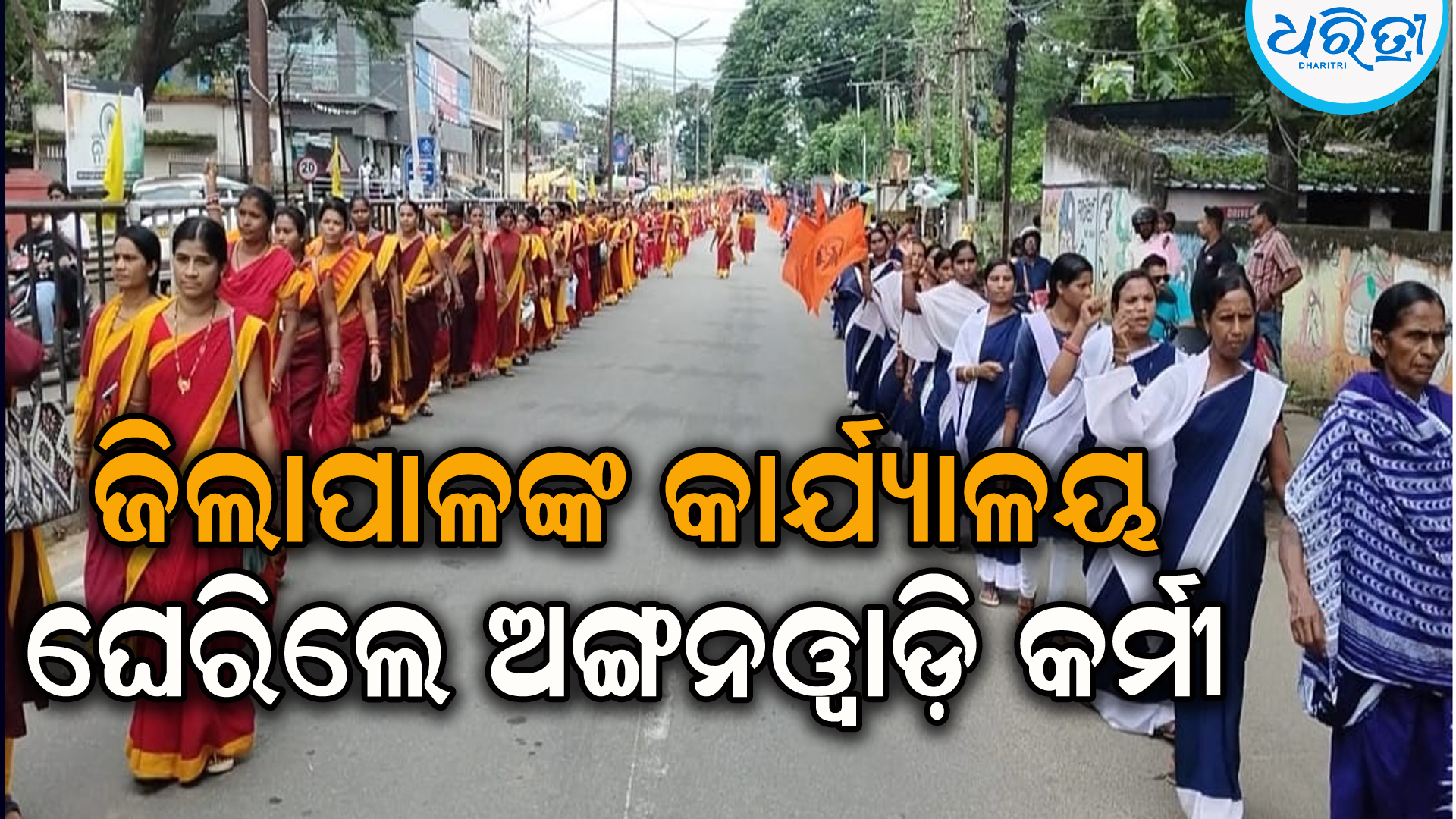 ବଲାଙ୍ଗୀର,୨୧ା୮(ସୁନୀଲ ମହାନ୍ତି): ଭାରତୀୟ ମଜଦୂର ସଂଘ ଅଲ ଓଡ଼ିଶା ଅଙ୍ଗନଓ୍ବାଡ଼ି ଲେଡିଜ୍ ଓ୍ବାର୍କର୍ସ ଆସୋସିଏଶନ ରାଜ୍ୟ ସଂଘ ବଲାଙ୍ଗୀର ଶାଖା ତରଫରୁ ୧୨ ଦଫା ଦାବି ନେଇ ବଲାଙ୍ଗୀର ଜିଲାପାଳଙ୍କ କାର୍ଯ୍ୟାଳୟ ଘେରାଉ କରାଯାଇଛି। ପୋଷଣ ଟ୍ରାକର ତଥା ଏଫ୍ଆର୍ଏସ୍ରେ ହେଉଥିବା ସମସ୍ୟା ଓ ଅନ୍ୟାନ୍ୟ ଦାବି ନେଇ ଶତାଧିକ ଅଙ୍ଗନଓ୍ବାଡି କର୍ମୀ ଏକ ରାଲିରେ କୋଶଳ କଳା ମଣ୍ଡଳ ପଡିଆରୁ ବାହାରି ବଲାଙ୍ଗୀର ଜିଲାପାଳଙ୍କ କାର୍ଯ୍ୟାଳୟରେ ପହଞ୍ଚି ବିକ୍ଷୋଭ ପ୍ରଦର୍ଶନ କରିଥିଲେ। ପରେ ଅଙ୍ଗନଓ୍ବାଡ଼ି କର୍ମୀମାନେ ଜିଲାପାଳଙ୍କ ଜରିଆରେ ଉପମୁଖ୍ୟମନ୍ତ୍ରୀ ପ୍ରଭାତୀ ପରିଡ଼ାଙ୍କୁ ଦାବିପତ୍ର ପ୍ରଦାନ କରିଛନ୍ତି।