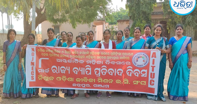 ଛତ୍ରପୁର,୮।୩(ଦିଲୀପ ସାମଲ): ଅନ୍ତର୍ଜାତୀୟ ମହିଳା ଦିବସ ସବୁ ସ୍ଥାନରେ ପାଳନ କରାଯାଉଥିବା ବେଳେ ନିଖିଳ ଓଡ଼ିଶା ଇ.ସି. ସଂଘ ପକ୍ଷରୁ ଏହି ଦିନକୁ ରାଜ୍ୟବ୍ୟାପୀ ପ୍ରତିବାଦ ଦିବସ ଭାବେ ପାଳନ କରାଯାଇଛି। ନୂତନ ସରକାର ଆସିବା ପରେ ରାଜ୍ୟ ସରକାରଙ୍କ ପକ୍ଷରୁ ଓଡ଼ିଶା ଜୀବିକା ମିଶନ ଓ ମିଶନ ଶକ୍ତିର କର୍ମଜୀବୀ ମହିଳାଙ୍କ ଉପରେ ପୂନର୍ଗଠନ ଆଳରେ କରାଯାଇଥିବା ବହିଷ୍କାର ଆଦେଶ ପ୍ରତ୍ୟାହାର ଦାବିରେ ନିଖିଳ ଓଡିଶା ଇ.ସି. ସଂଘ ଛତ୍ରପୁର ଶାଖା ପକ୍ଷରୁ ଏହାକୁ ପ୍ରତିବାଦ ଦିବସ ଭାବେ ପାଳନ କରିଛି।