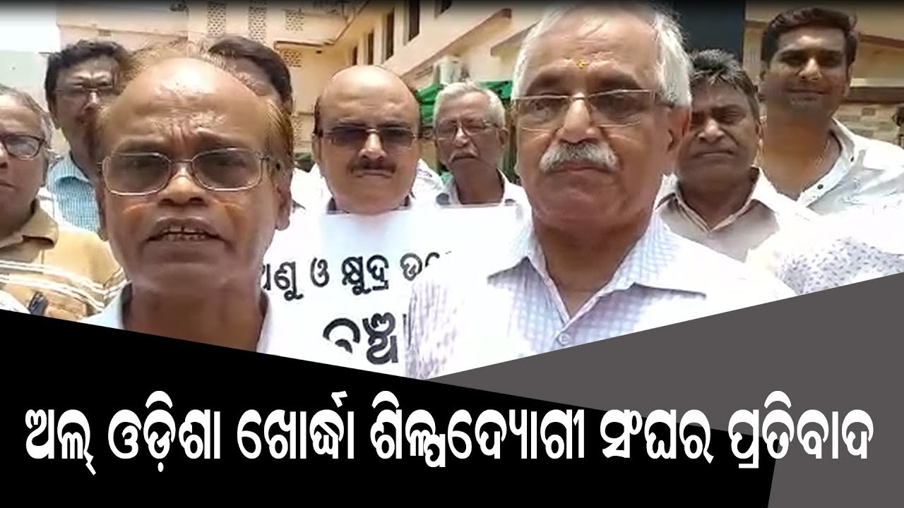 Members of the All Odisha Khurda Entrepreneurs Association wear black badges and stage a silent protest demanding the suspension of principal secretary LN Gupta of MSME department after some cops misbehaved with entrepreneurs who had gone to submit a memorandum to solve power and drinking water problems after the cyclonic storm Fani.