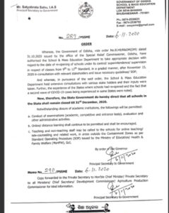 ଭୁବନେଶ୍ୱର,୬।୧୧(ବ୍ୟୁରୋ)-କରୋନା ମହାମାରୀର ଦିତୀୟ ଲହରର ଆଶଙ୍କାକୁ ଦୃଷ୍ଟିରେ ରଖି ଡିସେମ୍ବର ୩୧ ବର୍ଷ ପର୍ଯ୍ୟନ୍ତ ସ୍କୁଲ ବନ୍ଦ ରଖିବାକୁ ରାଜ୍ୟ ସରକାର ନିଷ୍ପତ୍ତି ନେଇଛନ୍ତି। ଏ ନେଇ ଶୁକ୍ରବାର ସ୍କୁଲ ଓ ଗଣଶିକ୍ଷା ବିଭାଗ ପକ୍ଷରୁ ବିଜ୍ଞପ୍ତି ପ୍ରକାଶ ପାଇଛି। ବିଭିନ୍ନ ଷ୍ଟେକହୋଲଡରଙ୍କ ସହ ଆଲୋଚନା ପରେ ସରକାର ଏହି ନିଷ୍ପତ୍ତି ନେଇଛନ୍ତି। ସ୍କୁଲ ବନ୍ଦ ସତ୍ତ୍ୱେ ସମସ୍ତ ପ୍ରକାର ପରୀକ୍ଷା ଓ ମୂଲ୍ୟାୟନ ଜାରି ରହିବ। ଅନଲାଇନ/ଦୂରନ୍ତର ଶିକ୍ଷା ଜାରି ରଖିବାକୁ ନିଷ୍ପତ୍ତି ହୋଇଛି। ଅନ୍ଲାଇନ ଶିକ୍ଷା/ ଟେଲିକାଉନସେଲିଂ ପାଇଁ ଶିକ୍ଷକ ସ୍କୁଲ ଆସିବେ ବୋଲି ବିଜ୍ଞପ୍ତିରେ ଉଲ୍ଲେଖ ରହିଛି।