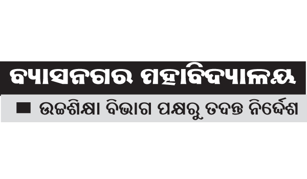 ଯାଜପୁର ରୋଡ୍,୨୬ା୯(ପବିତ୍ର ରଞ୍ଜନ ମହାନ୍ତି): ବ୍ୟାସନଗର ମହାବିଦ୍ୟାଳୟ ପରିଚାଳନା କମିଟି ସଭାପତି ପ୍ରଦୀପ ବିଶ୍ୱାଳ ଛାତ୍ରୀଙ୍କୁ ଶାରୀରିକ ସମ୍ପର୍କ ରଖିବାକୁ ବାଧ୍ୟ କରୁଥିବା ନେଇ ଅଭିଯୋଗ ହୋଇଛି। ଜଣେ ଛାତ୍ରୀଙ୍କ ଅଭିଯୋଗ ଆଧାରରେ ଉଚ୍ଚଶିକ୍ଷା ବିଭାଗ ପକ୍ଷରୁ ଯାଜପୁର ଜିଲାପାଳଙ୍କ କାର୍ଯ୍ୟାଳୟର ଜିଲା ଅନ୍ତରୀଣ ଅଭିଯୋଗ କମିଟିକୁ ତଦନ୍ତ ନିର୍ଦ୍ଦେଶ ଦିଆଯାଇଛି।