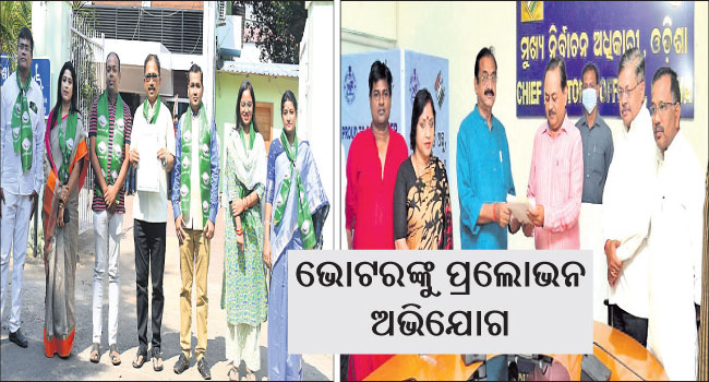 ଅନ୍ୟପକ୍ଷରେ ଧାମନଗର ଉପନିର୍ବାଚନରେ ଭାଜପା ପକ୍ଷରୁ ଟଙ୍କା ବଣ୍ଟାଯାଉଥିବା ନେଇ ବିଜେଡିର ୭ ଜଣିଆ ପ୍ରତିନିଧି ଦଳ ଭାଜପା ବିରୋଧରେ ରାଜ୍ୟ ମୁଖ୍ୟ ନିର୍ବାଚନ ଅଧିକାରୀଙ୍କ ନିକଟରେ ଫେରାଦ ହୋଇଛି। ଧାମନଗର ଉପନିର୍ବାଚନରେ ଭୋଟରଙ୍କୁ ଆକୃଷ୍ଟ କରିବା ପାଇଁ ଭାଜପା ନେତାମାନେ ଟଙ୍କା ଓ ଅନ୍ୟାନ୍ୟ ଜିନିଷ ଦେଉଥିବା ବିଜେଡି ନେତା ଲେନିନ ମହାନ୍ତି ଅଭିଯୋଗ କରିଛନ୍ତି। ଗତ ପଞ୍ଚାୟତ ଓ ପୌର ନିର୍ବାଚନ ଏବଂ ବିଭିନ୍ନ ଉପନିର୍ବାଚନରେ ଭାଜପା ଏଭଳି କରୁଥିବା ଦୃଷ୍ଟାନ୍ତ ରହିଛି। ନିର୍ବାଚନ ହାରିଯିବା ଭୟରେ ଭାଜପା ଭୋଟରମାନଙ୍କୁ ଆକୃଷ୍ଟ କରିବାକୁ ଏଭଳି ବେଆଇନ କାର୍ଯ୍ୟରେ ଲିପ୍ତ ରହୁଛି ବୋଲି ବିଜେଡି ଅଭିଯୋଗ କରିଛି। ଦୃଷ୍ଟାନ୍ତମୂଳକ ପଦକ୍ଷେପ ନେବାକୁ ସିଇଓଙ୍କୁ ବିଜେଡି ପକ୍ଷରୁ ଅନୁରୋଧ କରାଯାଇ ଦାବିପତ୍ର ଦିଆଯାଇଛି।