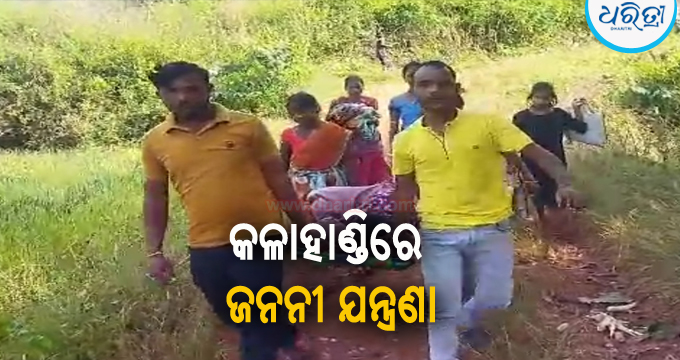ଥୁଆମୂଳ ରାମପୁର,୧୦।୧୧(ଦୁର୍ଗା କିର୍ତ୍ତୀ): କଳାହାଣ୍ଡିରେ ପୁଣି ଜନନୀ ଯନ୍ତ୍ରଣା ଦେଖିବାକୁ ମିଳିଛି। ରାସ୍ତା ଖରାପ ଯୋଗୁ ଗାଁକୁ ଯାଇ ପାରିଲାନି ୧୦୮ ଆମ୍ବୁଲାନ୍ସ। ଅଧବାଟରେ ଅଟକି ରହିବାରୁ ଆମ୍ବୁଲାନ୍ସ କର୍ମଚାରୀମାନେ ମାନବିକତା ଦେଖାଇ ୨ କିମି ଗର୍ଭବତୀଙ୍କୁ ଖଟିଆରେ ବୋହି ମୁଖ୍ୟ ରାସ୍ତା ପର୍ଯ୍ୟନ୍ତ ଆଣିଥିଲେ।