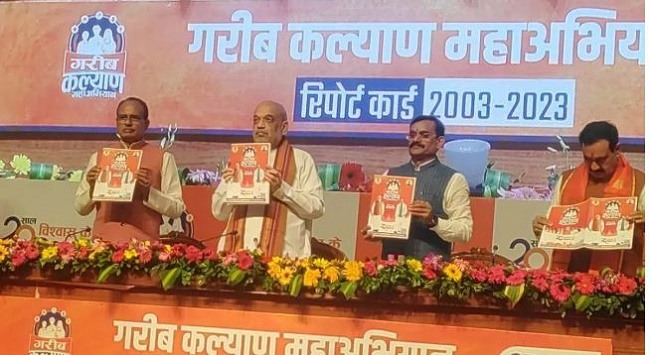 ଭୋପାଳ,୨୦।୮: କେନ୍ଦ୍ର ସ୍ବରାଷ୍ଟ୍ର ମନ୍ତ୍ରୀ ଅମିତ ଶାହା ଏବେ ମଧ୍ୟ ପ୍ରଦେଶ ଗସ୍ତରେ ଅଛନ୍ତି। ରବିବାର ଶାହା ଭୋପାଳରେ ଭାରତୀୟ ଜନତା ପାର୍ଟି(ଭାଜପା)ର ୨୦ ବର୍ଷର ରିପୋର୍ଟ କାର୍ଡ ଜାରି କରିଛନ୍ତି। ଏହି ରିପୋର୍ଟ କାର୍ଡର ନାମ ଗରିବ କଲ୍ୟାଣ ମହାଅଭିଯାନ ରଖାଯାଇଛି।