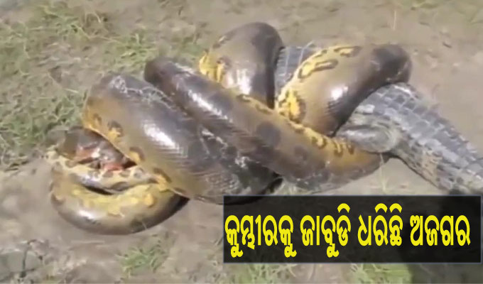 ଅଜଗର ଆଁରେ କୁମ୍ଭୀର : ଭିଡିଓ ଦେଖିଲେ ଉଡିଯିବ ହୋସ