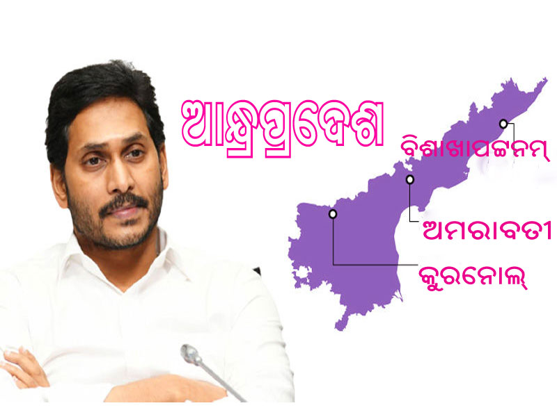 ରାଜ୍ୟ ସରକାରଙ୍କ କ୍ୟାବିନେଟ୍ ପକ୍ଷରୁ କୁରନୋଲ୍, ଅମରାବତୀ ଏବଂ ବିଶାଖାପଟ୍ଟନମ୍କୁ ତିନି ରାଜଧାନୀ ଭାବେ କାର୍ଯ୍ୟକାରୀ କରାଇବାକୁ ଅଣାଯାଇଥିବା ଏକ ପ୍ରସ୍ତାବକୁ ଗ୍ରହଣ କରାଯାଇଥିଲା।