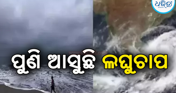 ୨୧ତାରିଖ ସୁଦ୍ଧା ବଙ୍ଗୋପସାଗରରେ ଏକ ଘୂର୍ଣ୍ଣିବଳୟ ସୃଷ୍ଟି ହେବାର ସମ୍ଭାବନା ରହିଛି। ଏହା କ୍ରମେ ଘନୀଭୂତ ହୋଇ ୨୩ ତାରିଖ ବେଳକୁ ଲଘୁଚାପର ରୂପ ନେବ ବୋଲି ପାଣିପାଗ ବିଭାଗ ପକ୍ଷରୁ ପୂର୍ବାନୁମାନ କରାଯାଇଛି। ପରେ ଏହା ପଶ୍ଚିମ-ଉତ୍ତରପଶ୍ଚିମ ଦିଗକୁ ଗତି କରି ଅବପାତର ରୂପ ନେବ। ତେବେ ରାଜ୍ୟରେ ଲଘୁଚାପର ପ୍ରଭାବ କିଭଳି ରହିବ, ଏଯାଏ ପାଣିପାଗ ବିଭାଗ ପକ୍ଷରୁ ସ୍ପଷ୍ଟ କରାଯାଇ ନାହିଁ।