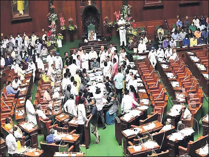 ବେଙ୍ଗାଲୁରୁ, ୨୨ା୯: କର୍ନାଟକ ବିଧାନସଭାରେ ବୁଧବାର ବିରୋଧୀ କଂଗ୍ରେସ ସଦସ୍ୟଙ୍କ ପ୍ରବଳ ହଟ୍ଟଗାଳ ମଧ୍ୟରେ ଧର୍ମାନ୍ତରୀକରଣ ନିରୋଧୀ ବିଲ୍‌ ଗୃହୀତ ହୋଇଛି। ଗତ ସପ୍ତାହରେ ସାମାନ୍ୟ ସଂଶୋଧନ ପରେ ବିଧାନ ପରିଷଦରେ ଗୃହୀତ ହୋଇଥିବା ଏହି ବିଲ୍‌କୁ ବିଧାନସଭାର ମଞ୍ଜୁରୀ ମିଳିବା ପରେ ଆଇନରେ ପରିଣତ କରିବା ପାଇଁ ରାଜ୍ୟପାଳଙ୍କ ନିକଟକୁ ପଠାଯିବ।