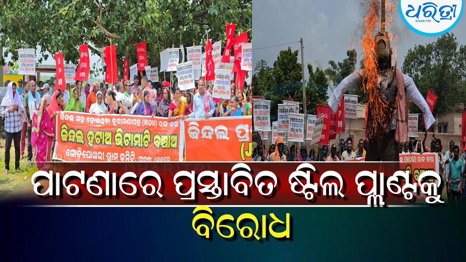 ପାଟଣା,୪।୬(ବୀରକିଶୋର ଦାଶ): କେନ୍ଦୁଝର ଜିଲା ପାଟଣା ବ୍ଲକରେ ହେବାକୁ ଥିବା ପ୍ରସ୍ତାବିତ ଷ୍ଟିଲ ପ୍ଲାଣ୍ଟକୁ ବିରୋଧ କରି ଯମୁନାପଶି ଓ ଚେମେଣା ପଞ୍ଚାୟତର ୧୮ଟି ଗ୍ରାମରେ ବୁଧବାର ଜିନ୍ଦଲ ପ୍ରତିରୋଧ ମଞ୍ଚ ପକ୍ଷରୁ ବିଶାଳ ବାଇକ ରାଲି ସହ ପ୍ରତିବାଦ ସଭା ଅନୁଷ୍ଠିତ ହୋଇଯାଇଛି। ଚିଲିଦା ମନ୍ଦିର ପଡ଼ିଆରେ ଆୟୋଜିତ ପ୍ରତିବାଦ ସଭାରେ ମଞ୍ଚ ସଭାପତି ଘନ ଶ୍ୟାମ ମହାନ୍ତ ପାଟଣା ବିଧାୟକ ଅଖିଳ ଚନ୍ଦ୍ର ନାଏକଙ୍କ କୁଶ ପୁତ୍ତଳିକା ଦାହ କରିଥିଲେ।