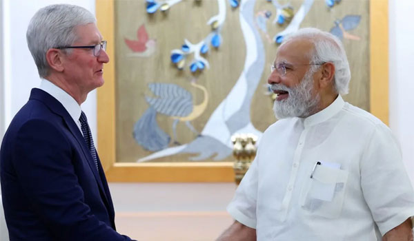 ନୂଆଦିଲ୍ଲୀ,୧୯।୪: ଭାରତ ଗସ୍ତରେ ଆସିଥିବା ଆପଲ ସିଇଓ ଟିମ କୁକ ପ୍ରଧାନମନ୍ତ୍ରୀ ନରେନ୍ଦ୍ର ମୋଦିଙ୍କୁ ବୁଧବାର ଭେଟିଛନ୍ତି। ଭାରତ ଗସ୍ତ ସମୟରେ ତାଙ୍କୁ ସ୍ବାଗତ ସମ୍ବର୍ଦ୍ଧନା ପାଇଁ ଟିମ କୁକ ପ୍ରଧାନମନ୍ତ୍ରୀଙ୍କୁ ଧନ୍ୟବାଦ ଜଣାଇଛନ୍ତି। ଟିମ କୁକ ପ୍ରଧାନମନ୍ତ୍ରୀଙ୍କୁ କହିଛନ୍ତି ଯେ ଆପଲ ସମଗ୍ର ଭାରତରେ ବିସ୍ତାର ସହିତ ନିବେଶ କରିବାକୁ ପ୍ରତିଶ୍ରୁତିବଦ୍ଧ।