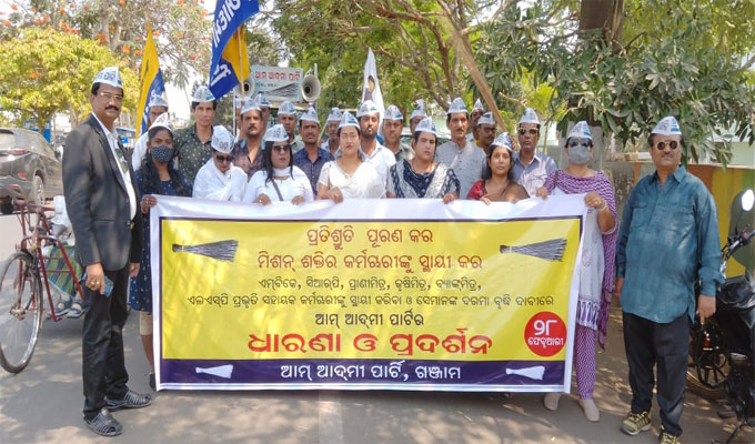 ଛତ୍ରପୁର,୨୮।୨(ଡି.ଏନ୍.ଏ.): ମିଶନ ଶକ୍ତି କମ୍ୟୁନିଟି ସପୋର୍ଟ ଷ୍ଟାଫ୍ଙ୍କ ସ୍ଥାୟୀ ଚାକିରି ଓ ଦରମା ବୃଦ୍ଧି ଦାବି ନେଇ ଆମ ଆଦମୀ ପାର୍ଟି ପକ୍ଷରୁ ମଙ୍ଗଳବାର ଗଞ୍ଜାମ ଜିଲାପାଳଙ୍କ କାର୍ଯ୍ୟାଳୟ ସମ୍ମୁଖରେ ବିକ୍ଷୋଭ ପ୍ରଦର୍ଶନ କରାଯାଇଛି । ଏନେଇ ଏକ ଦାବିପତ୍ର ମୁଖ୍ୟ ମନ୍ତ୍ରୀଙ୍କ ଉଦ୍ଦେଶ୍ୟରେ ଜିଲାପାଳଙ୍କୁ ପ୍ରଦାନ କରାଯାଇଥିଲା । ମିଶନ ଶକ୍ତିରେ ସହାୟକ ଷ୍ଟାଫ ଭାବରେ କାମ କରୁଥିବା ଏମ୍ବିକେ, ସିଆର୍ପି, ପ୍ରାଣୀମିତ୍ର, କୃଷିମିତ୍ର, ବ୍ୟାଙ୍କମିତ୍ର ଦୀର୍ଘ ଦିନ ଧରି କାମ କରୁଛନ୍ତି । ହେଲେ ସେମାନଙ୍କୁ ସ୍ଥାୟୀ କରରାଯାଇ ନାହିଁ । ଏଥିସହ ଦରମା ବୃଦ୍ଧି କରାଯାଉ ନ ଥିବା ପ୍ରତିବାଦରେ ଆମ ଆଦମୀ ପାର୍ଟି ପକ୍ଷରୁ କ୍ଷୋଭ ପ୍ରଦର୍ଶନ କରାଯାଇଛି। ଆଗାମୀ ଦିନରେ ଦାବି ପୂରଣ ନକରା ନ ଗଲେ ଆନ୍ଦୋଳନକୁ ବ୍ୟାପକ କରାଯିବ ବୋଲି ଚେତାବନୀ ଦିଆଯାଇଛି।