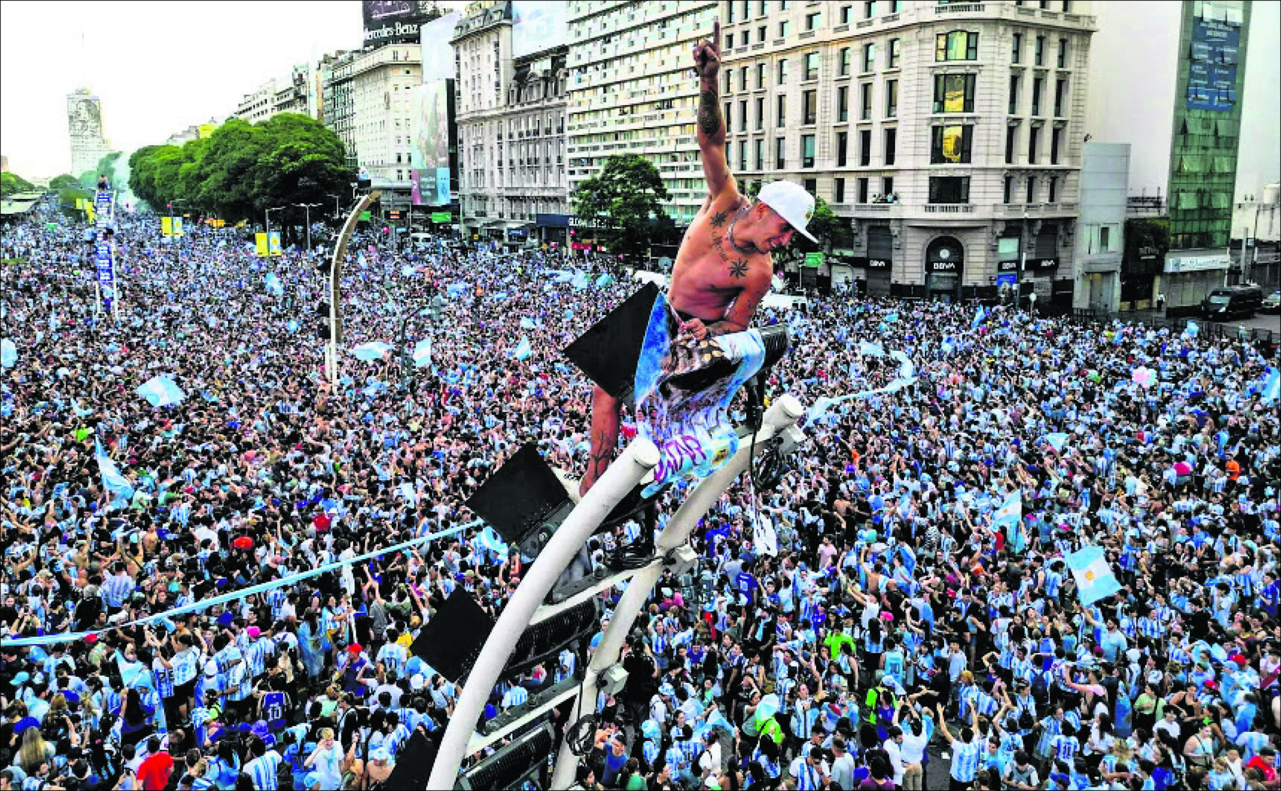 ବୁଏନ୍ସ ଏୟାର୍ସ, ୧୬/୧୨ (ଏପି):ଆର୍ଜେଣ୍ଟିନା କାତାର ଫୁଟ୍ବଲ ବିଶ୍ୱକପ୍ର ଫାଇନାଲରେ ପ୍ରବେଶ କରିବା ପରେ ଏହି ଦେଶରେ ଖୁସିର ଲହରି ଖେଳିଯାଇଥିଲା। ମ୍ୟାଚ ଶେଷ ହେବା ପରେ ରାଜଧାନୀ ବୁଏନ୍ସ ଏୟାର୍ସରେ ପ୍ରଶଂସକମାନେ ରାସ୍ତାକୁ ଚାଲିଆସିଥିଲେ। ଲୋକେ ସେମାନଙ୍କ କାର୍ରେ ଜାତୀୟ ପତାକା ହଲାଇ ବିଜୟକୁ ସ୍ବାଗତ କରିଥିଲେ। ଅନ୍ୟ କେତେକ ଜାତୀୟ ଦଳର ଜର୍ସି ପିନ୍ଧି ହର୍ଷ ଉଲ୍ଲାସରେ ନୃତ୍ୟଗୀତରେ ମାତିଯାଇଥିଲେ। ମ୍ୟାଚ୍ ବେଳେ କିନ୍ତୁ ବୁଏନ୍ସ ଏୟାର୍ସ ସହର ଏକପ୍ରକାର ନିସ୍ତବ୍ଧ ହୋଇପଡ଼ିଥିଲା। ପ୍ରଶଂସକମାନେ କାଫେ, ରେସ୍ତୋରଁା ଏବଂ ସର୍ବସାଧାରଣ ସ୍ଥାନମାନଙ୍କରେ ଭିଡ଼ ଜମାଇ ବଡ଼ ବଡ଼ ସ୍କ୍ରିନ୍ରେ ଲିଓନେଲ ମେସିଙ୍କ ନେତୃତ୍ୱାଧୀନ ଦଳର ଖେଳକୁ ଉପଭୋଗ କରୁଥିଲେ। ଏକ ବିଜ୍ଞାପନ ସଂସ୍ଥାରେ କାର୍ଯ୍ୟ କରୁଥିବା ୩୧ ବର୍ଷୀୟ ଏମିଲିଆନୋ ଆଦାମ ଦେଶର ପତାକାର ଏକ ଟୋପି ପିନ୍ଧି ବିଜୟ ଉତ୍ସବରେ ସାମିଲ ହୋଇଥିଲ। ତାଙ୍କ ଆନନ୍ଦର ଆଉ ସୀମା ନାହିଁ। ସେ ପ୍ରଥମ ଥର ଏକ ମ୍ୟାଚକୁ ଆରମ୍ଭରୁ ଶେଷ ପର୍ଯ୍ୟନ୍ତ ଉପଭୋଗ କରିପାରିଥିବା କହିଛନ୍ତି। ଚଳିତ ବିଶ୍ୱକପ୍ରେ ଆର୍ଜେଣ୍ଟିନାର ଆରମ୍ଭ ଯନ୍ତ୍ରଣାଦାୟକ ଥିଲା। ଏହାପରେ ଦଳ ବିଜୟ ପଥକୁ ଫେରିଥିଲା। ଦେଶରେ ମୁଦ୍ରାସ୍ଫୀତି ହାର ସର୍ବାଧିକ ୧୦୦ ପ୍ରତିଶତ ପାଖାପାଖି ରହିଛି, ପ୍ରତି ୧୦ଜଣରେ ୪ଜଣ ଦାରିଦ୍ର୍ୟ କଷାଘାତରେ ଜୀବନ ନିର୍ବାହ କରୁଛନ୍ତି। ମଙ୍ଗଳବାରର ବିଜୟରେ ଆମେ ଏତେ ଉତ୍ସାହିତ ହୋଇପଡ଼ିଛୁ ଯେ, ସତେଯେମିତି ଆମେ ବହୁ ବର୍ଷ ଧରି ଆନନ୍ଦର ସହ ଜୀବନ ଅତିବାହିତ କରିଆସୁଛୁ। ଏହି ଦୃଶ୍ୟ ଅତ୍ୟନ୍ତ ଚିତ୍ତାକର୍ଷକ ଥିଲା, ଯାହା ଭାଷାରେ ବର୍ଣ୍ଣନା କରିହେବ ନାହିଁ ବୋଲି ୨୭ ବର୍ଷୀୟା ଅଭିନେତ୍ରୀ ଲୈଲା ଡେସ୍ମେରୀ କହିଛନ୍ତି। ବୁଏନ୍ସ ଏୟାର୍ସ ପଡ଼ୋଶୀ ପାଲରମୋଠାରେ ଥିବା ଏକ ପାରମ୍ପରିକ କାଫେରେ ଟେଲିଭିଜନ ସ୍କ୍ରିନ୍ରେ ଲୋକେ ସେମିଫାଇନାଲ ଦେଖୁଥିଲେ। ମ୍ୟାଚରେ ୩୩ ମିନିଟ୍ ଖେଳ ଗୋଲ୍ଶୂନ୍ୟ ରହିବା ପରେ ସେମାନେ ନର୍ଭସ ହୋଇପଡ଼ିଥିଲେ। ମାତ୍ର ମେସି ପେନାଲ୍ଟି କିକ୍ ଜରିଆରେ ଗୋଲ୍ ସ୍କୋର କରିବା ମାତ୍ରେ ସ୍ଥାନଟି ଉତ୍ସବ ମୁଖରିତ ହୋଇପଡ଼ିଥିଲା। ଲୋକେ ମେସି, ମେସି, ମେସି ବୋଲି ଚିତ୍କାର କରିବା ସହ ଭଗବାନଙ୍କ ଉଦ୍ଦେଶ୍ୟରେ ହାତ ଟେକି ଆଶୀର୍ବାଦ ଭିକ୍ଷା କରିଥିଲେ। ହର୍ଷ ଉଲ୍ଲାସ ଥମିବାକୁ ଯାଉଥିବା ବେଳେ ଜୁଲିଆନ୍ ଅଲ୍ଭାରେଜଙ୍କ ଗୋଲ ପ୍ରଶଂସକଙ୍କୁ ଖୁସିରେ ଆତ୍ମହରା କରିଦେଇଥିଲା।