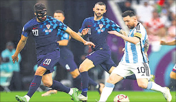 ମ୍ୟାଚର ୩୨ତମ ମିନିଟରେ ବକ୍ସ ଅଞ୍ଚଳ ମଧ୍ୟରେ ବଲ୍ ପାଇଁ ସଂଘର୍ଷ ସମୟରେ ଆର୍ଜେଣ୍ଟିନାର ଆଲ୍ଭାରେଜଙ୍କୁ ଟାଣି ତଳେ ପକାଇ ଦେଇଥିଲେ କ୍ରୋଏସିଆ ଗୋଲକିପର ଡୋମିନିକ୍ ଲିଭାକୋଭିକ୍। ଫଳରେ ରେଫରି ଲିଭାକୋଭିକ୍ଙ୍କୁ ୟେଲୋ କାର୍ଡ ଦେଖାଇଥିଲେ ଏବଂ ଆର୍ଜେଣ୍ଟିନାକୁ ବହୁ ଗୁରୁତ୍ୱପୂର୍ଣ୍ଣ ପେନାଲ୍ଟି ସୁଯୋଗ ଦେଇଥିଲେ। ଏଥିରେ ଉତ୍କ୍ଷିପ୍ତ ହୋଇ କ୍ରୋଏସିଆ ଖେଳାଳି ମାଟେଓ କୋଭାକିକ୍ ଅଣ ଖେଳୁଆଡ଼ ମନୋଭାବ ଦେଖାଇଥିଲେ। ଫଳରେ ରେଫରି ତାଙ୍କୁ ମଧ୍ୟ ୟେଲୋକାର୍ଡ ଦେଖାଇଥିଲେ। ୩୪ତମ ମିନିଟରେ ପେନାଲ୍ଟି ଶଟ୍ ମାରିଥିଲେ ଅଧିନାୟକ ଲିଓନେଲ ମେସି। ସେ ପ୍ରତିପକ୍ଷ ଗୋଲକିପରଙ୍କୁ ଚକ୍ମା ଦେଇ ରାଇଟ୍ କର୍ନରରେ ଗୋଲ ସ୍କୋର କରିବା ସହ ଆର୍ଜେଣ୍ଟିନାକୁ ୧-୦ରେ ଅଗ୍ରଣୀ କରାଇଥିଲେ। ଶୁଟ୍ଆଉଟକୁ ଛାଡ଼ିଦେଲେ ଏଥିସହ ସେ ୧୯୬୬ରେ ପର୍ତ୍ତୁଗାଲର ୟୁସେବିଓ ଏବଂ ୧୯୭୮ରେ ନେଦରଲାଣ୍ଡ୍ସର ରବ୍ ରେନସେନବ୍ରିଙ୍କ ସମକକ୍ଷ ମେସି ୨୦୨୨ ବିଶ୍ୱକପରେ ପେନାଲ୍ଟିରୁ ୪ଟି ଗୋଲ ଦେବାର ରେକର୍ଡ କଲେ। ଏହାଥିଲା ବିଶ୍ୱକପରେ ମେସିଙ୍କର ୧୧ତମ ଗୋଲ। ଯାହାକି କୌଣସି ଆର୍ଜେଣ୍ଟିନା ଖେଳାଳିଙ୍କ ପକ୍ଷରେ ସର୍ବାଧିକ। ମେସି ଗୋଲ ଦେବାର ୫ ମିନିଟ ପରେ ଅର୍ଥାତ୍ ୩୯ତମ ମିନିଟରେ ଜୁଲିଆନ ଆଲ୍ଭାରେଜ ଏକ ଗୋଲ ଦେଇ ଆର୍ଜେଣ୍ଟିନା ଅଗ୍ରଣୀ ବ୍ୟବଧାନକୁ ୨-୦ରେ ପହଞ୍ଚାଇ ଦେଇଥିଲେ। ମିଡ୍ଫିଲ୍ଡରୁ ମେସିଙ୍କଠାରୁ ବଲ୍ ପାଇ ଏହି ଯୁବ ଷ୍ଟ୍ରାଇକର କ୍ରୋଏସିଆର ରକ୍ଷଣଭାଗକୁ ଭେଦକରିବା ସହ ଗୋଲକିପରଙ୍କୁ ଚତୁରତାର ସହ ଅତିକ୍ରମ କରି ଗୋଲ ସ୍କୋର କରିବାରେ ସକ୍ଷମ ହୋଇଥିଲେ। ପ୍ରଥମାର୍ଦ୍ଧରେ କ୍ରୋଏସିଆ ୬୨ ପ୍ରତିଶତ ବଲ୍କୁ ନିୟନ୍ତ୍ରଣରେ ରଖିଥିଲେ ହେଁ ଗୋଟିଏ ହେଲେ ଶଟ୍ ଟାର୍ଗେଟ କରିପାରି ନ ଥିଲା। ଅନ୍ୟପକ୍ଷରେ ଆଲଭାରେଜଙ୍କର ଚଳିତ ବିଶ୍ୱକପରେ ଏହା ତୃତୀୟ ଗୋଲ ଥିଲା। ୨୨ କିମ୍ବା ତା’ଠାରୁ କମ୍ ବୟସର ଖେଳାଳିଭାବେ କେବଳ ଗୋଞ୍ଜାଲୋ ହିଗୁଏନ ୨୦୧୦ ବିଶ୍ୱକପରେ ୪ଟି ଗୋଲ ଦେବାରେ ସକ୍ଷମ ହୋଇଥିଲେ। ମ୍ୟାଚର ୬୯ତମ ମିନିଟରେ ଆର୍ଜେଣ୍ଟିନା ୩ୟ ଗୋଲଟି ସ୍କୋର କରିଥିଲା। ମେସି ଏକାକୀ କ୍ରୋଏସିଆ ଖେଳାଳିଙ୍କୁ ଅତିକ୍ରମ କରି ବଲ୍କୁ ଗୋଲପୋଷ୍ଟର ନିକଟରେ ପହଞ୍ଚାଇବାପରେ ଜୁଲିଆନ ଆଲଭାରେଜଙ୍କ ନିକଟକୁ ପାସ୍ ଦେଇଥିଲେ। ଆଲଭାରେଜ କୌଣସି ଭୁଲ ନ କରି ତତ୍କ୍ଷଣାତ ବଲ୍କୁ କ୍ରୋଏସିଆ ଗୋଲପୋଷ୍ଟକୁ ବଲ୍ ପଠାଇ ଦେଇଥିଲେ। ଏହାକୁ ମିଶାଇ ମେସି ୧୯୬୬ପରେ ପ୍ରଥମ ଖେଳାଳିଭାବେ ଗୋଟିଏ ବିଶ୍ୱକପର ୩ଟି ଭିନ୍ନ ମ୍ୟାଚରେ ଗୋଲ ଦେବାସହ ଗୋଲ ଦେବାରେ ସହାୟକ ମଧ୍ୟ ହେଲେ।