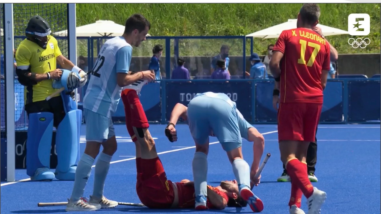 ଟୋକିଓ,୨୪।୭: ଟୋକିଓ ଅଲିମ୍ପିକ୍ସ ମହାକୁମ୍ଭର ପ୍ରଥମ ଦିନରେ ସାମ୍ନାକୁ ଆସିଛି ପୂରା ଖେଳ ଜଗତକୁ ନିନ୍ଦିତ କଲା ଭଳି ଦୃଶ୍ୟ। ଶନିବାର ଆର୍ଜେଣ୍ଟିନା ଓ ସ୍ପେନ ମଧ୍ୟରେ ଖେଳାଯାଇଥିବା ମ୍ୟାଚ୍ ୧-୧ ଗୋଲରେ ବରାବର ରହିଥିଲା। ମ୍ୟାଚ୍ ଶେଷ ହେବାର କିଛି ମିନିଟ୍ ପୂର୍ବରୁ ମାଂସପେଶୀ ଜନିତ ଆହତ ସମସ୍ୟା ଯୋଗୁ ଫିଲ୍ଡରେ ଶୋଇ ପଡ଼ିଥିଲେ ସ୍ପାନିଶ ଖେଳାଳି ଡେଭିଡ୍ ଆଲେଗ୍ରେ। ପ୍ରତିପକ୍ଷ ଆର୍ଜେଣ୍ଟିନାର ଜଣେ ଖେଳାଳି ଆଲେଗ୍ରେଙ୍କୁ ସାହାଯ୍ୟ ପାଇଁ ଆଗେଇ ଆସିଥିଲେ। ଚିକିତ୍ସା ଚାଲିଥିବାବେଳେ ୩୬ ବର୍ଷୀୟ ସ୍ପାନିଶ ଖେଳାଳିଙ୍କ ମୁହଁରେ ଆର୍ଜେଣ୍ଟିନାର ଲୁକାସ ରୋସି କହିଥିଲେ, ‘ଜାଣିଶୁଣି ସମୟ ନଷ୍ଟ କରୁଛ’। ଏହାପରେ ଆଲେଗ୍ରେଙ୍କ ମୁଣ୍ଡକୁ ହକି ଷ୍ଟିକ୍ରେ ମାରିଥିଲେ।