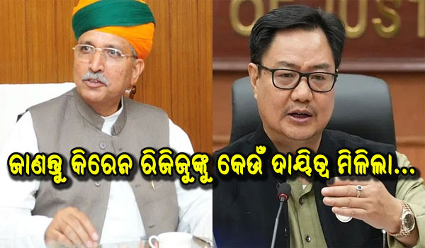 ପ୍ରକାଶ ଯେ, ପ୍ରଧାନମନ୍ତ୍ରୀ ନରେନ୍ଦ୍ର ମୋଦିଙ୍କ ସୁପାରିସ କ୍ରମେ ରାଷ୍ଟ୍ରପତି ଦ୍ରୌପଦୀ ମୁର୍ମୁ କ୍ୟାବିନେଟ ଅଦଳବଦଳକୁ ଅନୁମୋଦନ କରିଛନ୍ତି। ସରକାରୀ ସୂଚନା ଅନୁଯାୟୀ, କିରେନ ରିଜିଜୁଙ୍କୁ ଆଇନ ମନ୍ତ୍ରଣାଳୟରୁ ହଟାଇ ଭୂ-ବିଜ୍ଞାନ ମନ୍ତ୍ରଣାଳୟର ଦାୟିତ୍ୱ ଦିଆଯାଇଛି।