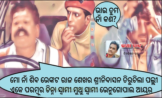 ଦିନେ ରାସ୍ତାରେ ଦୁଇଜଣ ଝଗଡ଼ା କରୁଥିଲାବେଳେ ଜଣେ ରାଗିକି କହିଲା, ମୁଁ ଯଦି ମିଛୁଆ ପ୍ରମାଣିତ ହୁଏ ତେବେ ମୋ ନାଁରେ କୁକୁର ପାଳିବୁ । ମୋତେ ପଚାରିବାକୁ ଇଚ୍ଛା ହେଉଥିଲା, ଆଜ୍ଞା କହିବା ପୂର୍ବରୁ କୁକୁରକୁ ହେଲେ ଟିକେ ପଚାରିଥାନ୍ତେ ଆପଣଙ୍କ ନାଁ, ତା’ର ପସନ୍ଦ କି ନୁହେଁ। ଏବେ କୁକୁରଙ୍କ ନାଁ ଶୁଣିଲେ ତାକୁ କୁକୁର ବୋଲି କହିବାକୁ ସଂକୋଚ ଲାଗୁଛି। କୁକୁରଙ୍କ ଇଂଲିଶ ନାଁ ଶୁଣିଲେ ଦେଶୀ ଛୁଆ ଲାଜେଇ ଯାଉଛନ୍ତି । ତେଣୁ ଭବିଷ୍ୟତରେ ‘ମୋ ନାଁରେ କୁକୁର ପାଳିବୁ’ କହିବା ପୂର୍ବରୁ ନିଜ ନାଁ ବଦଳେଇ କୁକୁରଙ୍କ ନାମ ଭଳି ସୁନ୍ଦରିଆ ଇଂଲିଶ ନାଁ ରଖ, ନଚେତ୍ କୁକୁରଙ୍କ ଦ୍ୱାରା ଆପଣଙ୍କ ନାମ ପ୍ରତ୍ୟାଖ୍ୟାତ ହୋଇ ବେଇଜ୍ଜତ ହେବା ଥୟ ।