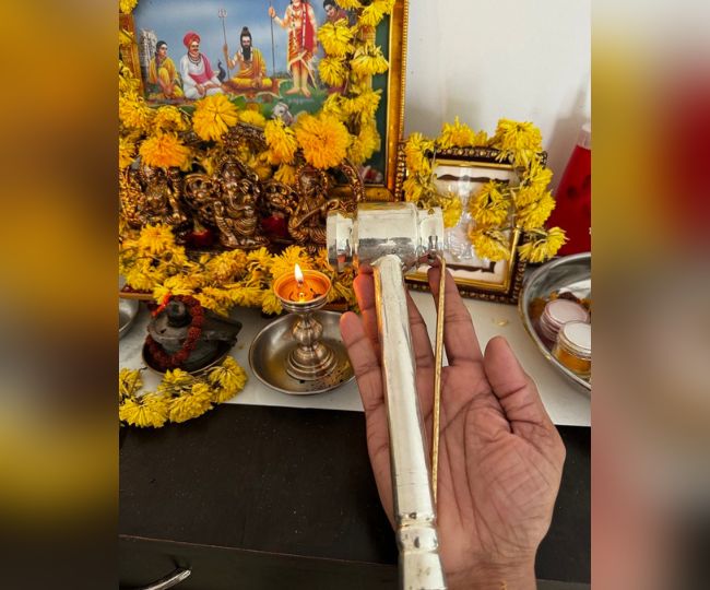 ଶିଳ୍ପୀ ଅରୁଣ ଯୋଗୀରାଜ ରାମଲାଲାଙ୍କ ପ୍ରତିମାକୁ ଏକ ରୁପା ହାତୁଡ଼ି ଏବଂ ସୁନା ନିହଣରେ ତିଆରି କରିଛନ୍ତି। ତାଙ୍କ ଇନ୍ଷ୍ଟାଗ୍ରାମ ପେଜ୍ରେ ଏହାର ଫଟୋ ଶେୟାର କରି ଏଥିରେ ସେ କ୍ୟାପ୍ଶନ ଲେଖିଛନ୍ତି, ମୁଁ ଏହି ଉପକରଣ ସହିତ ରାମଲାଲାଙ୍କ ଐଶ୍ୱରୀୟ ଆଖି ତିଆରି କରିଛି।