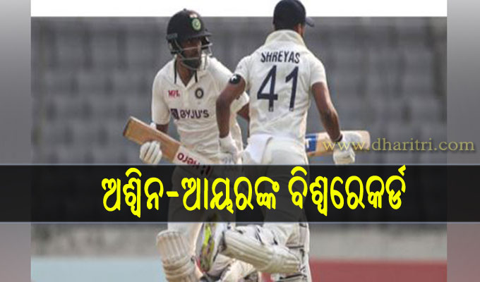 ଢାକା,୨୫।୧୨: ଦୁଇ ମ୍ୟାଚ୍‌ ବିଶିଷ୍ଟ ଟେଷ୍ଟ ସିରିଜରେ ଟିମ ଇଣ୍ଡିଆ ବାଂଲାଦେଶକୁ ୨-୦ରେ ପରାସ୍ତ କରିଛି। ଭାରତ ପାଇଁ ଏହି ମ୍ୟାଚରେ ରବିଚନ୍ଦ୍ରନ ଅଶ୍ୱିନ ଏବଂ ଶ୍ରେୟସ ଆୟର ବିଜୟର ହିରୋ ଥିଲେ। ଉଭୟ ଏହି ମ୍ୟାଚରେ ୭୧ ରନର ଏକ ମ୍ୟାଚ ବିଜୟୀ ଭାଗିଦାରୀ କରିଥିଲେ। ଦୁହିଁଙ୍କ ମଧ୍ୟରେ ଏହି ସହଭାଗିତା ମଧ୍ୟ ଏକ ବଡ଼ ରେକର୍ଡ ସୃଷ୍ଟି କରିଛି। ଚତୁର୍ଥ ଇନିଂସରେ ଭାରତରୁ ଅଷ୍ଟମ ପାଇଁ ଏହା ଦ୍ୱିତୀୟ ବୃହତ୍ତମ ଭାଗିଦାରୀ ଥିଲା।