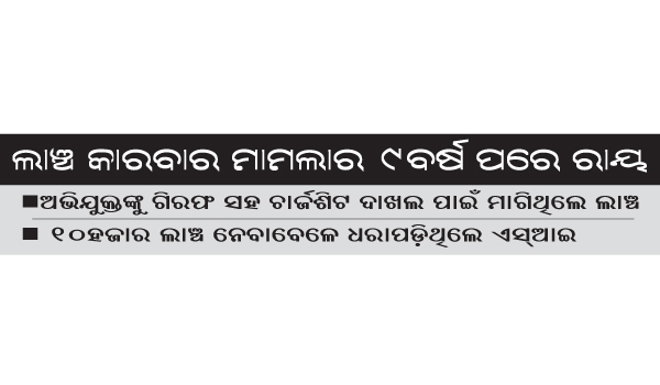 ଏକ ଜମିଜମା ମାମଲାକୁ କେନ୍ଦ୍ର କରି ପଡ଼ୋଶୀଙ୍କ ସହ ତ୍ରିଲୋଚନଙ୍କ ବାପାଙ୍କ ଗଣ୍ଡଗୋଳ ହୋଇଥିଲା। ଏନେଇ ତ୍ରିଲୋଚନଙ୍କ ବାପାଙ୍କ ଅଭିଯୋଗକ୍ରମେ ଟାଉନ ଥାନାରେ ଏକ ମାମଲା (ନଂ.୨୬୦/୨୦୧୩) ରୁଜୁ କରାଯାଇଥିଲା। ଏହି ମାମଲାର ତଦନ୍ତକାରୀ ଅଧିକାରୀ ଏଏସ୍ଆଇ ଲକ୍ଷ୍ମୀଧର ଥିଲେ। ତେବେ ମାମଲାରେ ସମ୍ପୃକ୍ତ ଥିବା ଅଭିଯୁକ୍ତଙ୍କୁ ଗିରଫ କରବା ସହ ଏସଂକ୍ରାନ୍ତରେ ଚାର୍ଜଶିଟ ଦାଖଲ ପାଇଁ ଏଏସ୍ଆଇ ଲକ୍ଷ୍ମୀଧର ୧୦ ହଜାର ଟଙ୍କା ଲାଞ୍ଚ ମାଗିଥିଲେ। ଏନେଇ ଭିଜିଲାନ୍ସ ନିକଟରେ ତ୍ରିଲୋଚନ ଅଭିଯୋଗ କରିଥିଲେ। ପୂର୍ବଯୋଜନା ମୁତାବକ ଅଗଷ୍ଟ ୧୨ରେ ଶକୁନ୍ତଳା ମାର୍କେଟ କମ୍ପ୍ଲେକ୍ସ ନିକଟରେ ତ୍ରିଲୋଚନଙ୍କଠାରୁ ଲାଞ୍ଚ ଟଙ୍କା ଗ୍ରହଣ କରିବା ସମୟରେ ଭିଜିଲାନ୍ସ ଲକ୍ଷ୍ମୀଧରଙ୍କୁ ଗିରଫ କରିଥିଲା। ଏନେଇ ଭୁବନେଶ୍ୱର ଭିଜିଲାନ୍ସ ଥାନାରେ ଏକ ମାମଲା (ନଂ.୩୧/୨୦୨୩) ରୁଜୁ କରାଯାଇ ଲକ୍ଷ୍ମୀଧରଙ୍କୁ କୋର୍ଟଚାଲାଣ କରାଯାଇଥିଲା। ହେଲେ ସେ ପରବର୍ତ୍ତୀ ସମୟରେ ଜାମିନରେ ଆସିଥିଲେ। ଏହି ମାମଲାରେ ୨୦୧୪ରେ ଭିଜିଲାନ୍ସ ଚାର୍ଜଶିଟ ଦାଖଲ କରିବା ପରେ ମାମଲାର ଶୁଣାଣି ପ୍ରକ୍ରିୟା ଆରମ୍ଭ ହୋଇଥିଲା। ୯ଜଣଙ୍କ ସାକ୍ଷ୍ୟ ଓ ଅନ୍ୟ ଦସ୍ତାବିଜ ଆଧାରରେ କୋର୍ଟ ରାୟ ପ୍ରକାଶ କରିଛନ୍ତି। ସରକାରଙ୍କ ପକ୍ଷରୁ ସ୍ବତନ୍ତ୍ର ସରକାରୀ ଓକିଲ ହେମନ୍ତ କୁମାର ସ୍ବାଇଁ ମାମଲା ପରିଚାଳନା କରୁଥିଲେ।