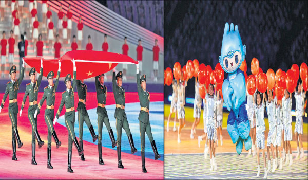 ଉଦ୍ଘାଟନୀ ଉତ୍ସବରେ ଚାଇନାର ୧୦୦୦ ବର୍ଷର ସଭ୍ୟତା, କଳା ଓ ସଂସ୍କୃତିକୁ ଦର୍ଶାଇବାକୁ ପ୍ରୟାସ କରାଯାଇଥିଲା। ଆର୍ଟିଫିସିଆଲ୍ ଇଣ୍ଟେଲିଜେନ୍ସର ବ୍ୟବହାରରେ ବିଭିନ୍ନ ଦେଶର ଆଥ୍ଲେଟମାନଙ୍କ ଫ୍ଲାଗ୍ମାର୍ଚ୍ଚକୁ ପ୍ରଦର୍ଶିତ କରାଯାଇଥିଲା। ୪୫ ରାଷ୍ଟ୍ରର ୧୨ ହଜାର ଆଥ୍ଲେଟ ଏହି ଇଭେଣ୍ଟରେ ଅଂଶଗ୍ରହଣ କରିଥିବା ବେଳେ ଚାଇନା ରାଷ୍ଟ୍ରପତି ସି ଜିନ୍ପିଙ୍ଗ ପତାକା ଦେଖାଇ କାର୍ଯ୍ୟକ୍ରମକୁ ଉଦ୍ଘାଟନ କରିଥିଲେ। ଉଦ୍ଘାଟନୀ ଉତ୍ସବରେ ଅନ୍ୟମାନଙ୍କ ମଧ୍ୟରେ ଅଲିମ୍ପିକ୍ସ କାଉନ୍ସିଲ୍ ଅଫ୍ ଏସିଆର ସଭାପତି ରଣଧୀର ସିଂ, ଅନ୍ତର୍ଜାତୀୟ ଅଲିମ୍ପିକ୍ସ କାଉନ୍ସିଲ୍ ମୁଖ୍ୟ ଥୋମାସ୍ ବାକ୍, ବିଭିନ୍ନ ରାଷ୍ଟ୍ରର ମୁଖ୍ୟ, ସମସ୍ତ ଜାତୀୟ ଅଲିମ୍ପିକ୍ସ କମିଟି ସଦସ୍ୟ ଏହି କାର୍ଯ୍ୟକ୍ରମରେ ଅଂଶଗ୍ରହଣ କରିଥିଲେ। ଭାରତୀୟ କ୍ରୀଡା ଓ ଯୁବ ବ୍ୟାପାର ମନ୍ତ୍ରୀ ଅନୁରାଗ ଠାକୁର ଓ ଭାରତୀୟ ଅଲିମ୍ପିକ୍ସ ଆସୋସିଏଶନ୍ ମୁଖ୍ୟ ପି.ଟି. ଉଷା ଏହି କାର୍ଯ୍ୟକ୍ରମକୁ ବୟକଟ୍ କରିଥିଲେ। ଅରୁଣାଚଳ ପ୍ରଦେଶର ୩ ଉଷୁ ଖେଳାଳିଙ୍କୁ ଭିଜା ନ ମିଳିବା କାରଣରୁ ଉଭୟ ଏହି ନିଷ୍ପତ୍ତି ନେଇଥିଲେ।