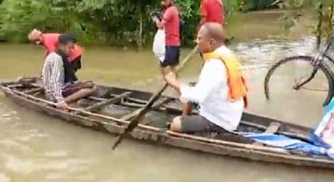 ଆସାମର ପରିବହନ ମନ୍ତ୍ରୀ ପରିମଲ ଶୁକ୍ଳାବୌଦ୍ଧ ବନ୍ୟା ପୀଡ଼ିତ ଲୋକଙ୍କୁ ସାହାଯ୍ୟ କରିବାକୁ ଅଣ୍ଟା ଭିଡିଛନ୍ତି । ନିକଟରେ ତାଙ୍କର ଏକ ଭିଡିଓ ସୋସିଆଲ ମିଡିଆରେ ଭାଇରାଲ ହେବାରେ ଲାଗିଛି । ଯେଉଁଥିରେ ବନ୍ୟା ପୀଡ଼ିତ ଜଣେ ରୋଗିଙ୍କୁ ହସ୍ପିଟାଲରେ ପହଞ୍ଚାଇବାକୁ ନିଜେ ମନ୍ତ୍ରୀ ଡଙ୍ଗା ଚଲାଉଥିବା ଦେଖାଯାଇଛି ।