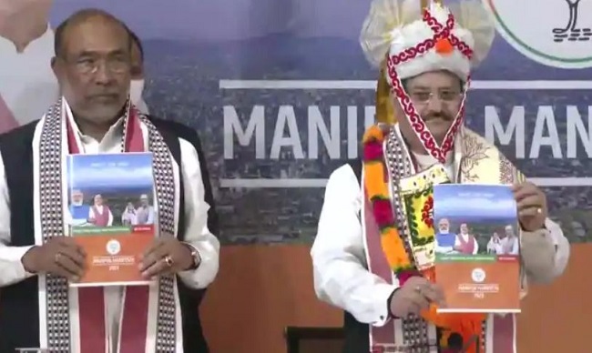 ଏଥର ମଣିପୁରରେ ଭାଜପା ଶାସନ କ୍ଷମତାକୁ ଆସିଲେ ଉଜ୍ୱଳା ଲାଭାର୍ଥୀଙ୍କୁ ୨ଟି ସିଲିଣ୍ଡର ମାଗଣାରେ ଦେବା ସହ କଲେଜ ଯାଉଥିବା ସମସ୍ତ ମେଧାବୀ ଛାତ୍ରୀଙ୍କୁ ମାଗଣାରେ ସ୍କୁଟି ଯୋଗାଇ ଦିଆଯିବ । ମହିଳା, ଯୁବକ ଓ କୃଷକଙ୍କୁ ସଶକ୍ତ କରିବା ଆମର ଲକ୍ଷ୍ୟ ବୋଲି ନଡ୍ଡା ଘୋଷଣା ପତ୍ର ଜାରି କରିବା ସମୟରେ କହିଛନ୍ତି । ଏହାସହ ମତ୍ସଜୀବିଙ୍କୁ ୫ ଲକ୍ଷ ଟଙ୍କାର ମାଗଣା ଦୁର୍ଘଟଣା ବୀମା, ପଛୁଆ ବର୍ଗର ଝିଅମାନଙ୍କ ଶିକ୍ଷା ପାଇଁ ୨୫ ହଜାର ଟଙ୍କା ପ୍ରୋତ୍ସାହନ ରାଶି ମିଳିବ । ଦ୍ୱାଦଶ ପାସ କରିଥିବା ସମସ୍ତ ମେଧାବୀ ଛାତ୍ରଙ୍କୁ ମାଗଣାରେ ଲାପଟପ ବି ପ୍ରଦାନ କରାଯିବ ।