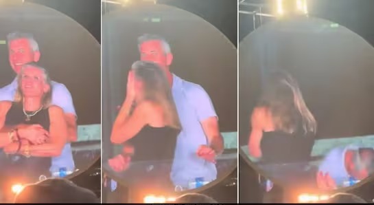 ଜମ୍ବୋଟ୍ରନ ସ୍କ୍ରିନରେ ବାୟରନ ଏବଂ କାବୋଟଙ୍କୁ ଏକାଠି ଆଲିଙ୍ଗନ କରି ଠିଆ ହୋଇଥିବା ଦେଖାଯାଇଥିଲା। କ୍ୟାମେରା ସେମାନଙ୍କ ଉପରେ ଫୋକସ କରିବା ମାତ୍ରେ ଉଭୟେ ନିଜ ମୁହଁ ଲୁଚାଇ ଦୂରେଇ ଯାଇଥିଲେ। ଏହି ମୁହୂର୍ତ୍ତକୁ ଦେଖି କୋଲ୍ଡପ୍ଲେର ଫ୍ରଣ୍ଟମ୍ୟାନ କ୍ରିସ ମାର୍ଟିନ ମଜାଳିଆ ଢଙ୍ଗରେ ମନ୍ତବ୍ୟ ଦେଇଥିଲେ, “ଦେଖନ୍ତୁ ଏ ଦୁଇଜଣଙ୍କୁ… ହୁଏତ ସେମାନେ ପ୍ରେମ କରୁଛନ୍ତି କିମ୍ବା ବହୁତ ଲାଜ କରୁଛନ୍ତି!” ଏହି ମନ୍ତବ୍ୟ ଦର୍ଶକଙ୍କ ମଧ୍ୟରେ ହସ ଓ ଉତ୍ସାହ ସୃଷ୍ଟି କରିଥିଲା।