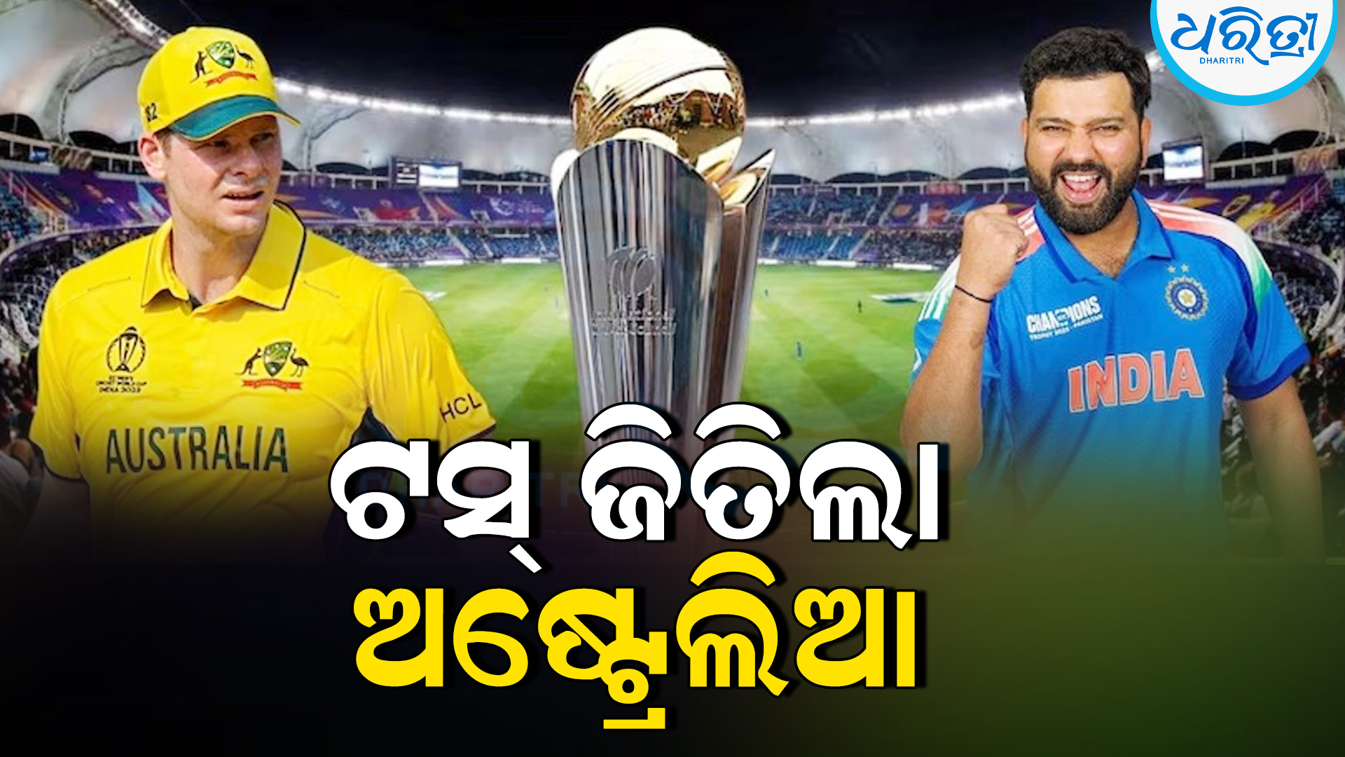 ଦୁବାଇ,୪ା୩: ଦୁବାଇ ଅନ୍ତର୍ଜାତୀୟ କ୍ରିକେଟ ଷ୍ଟାଡିୟମରେ ମଙ୍ଗଳବାର ଖେଳାଯାଉଥିବା ଆଇସିସି ଚାମ୍ପିୟନ୍ସ ଟ୍ରଫିର ପ୍ରଥମ ସେମିଫାଇନାଲ ମ୍ୟାଚ୍ରେ ଅଷ୍ଟ୍ରେଲିଆ ଟସ୍ ଜିତି ପ୍ରଥମେ ବ୍ୟାଟିଂ କରିବାକୁ ନିଷ୍ପତ୍ତି ନେଇଛି। ଫଳରେ ଭାରତ ଆମନ୍ତ୍ରଣ ପାଇ ଫିଲ୍ଡିଂ କରିବ।