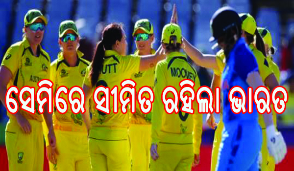 କେପ୍ ଟାଉନ୍,୨୩ା୨: କେପ୍ଟାଉନ୍ର ନ୍ୟୁଲ୍ୟାଣ୍ଡସ୍ରେ ଖେଳାଯାଉଥିବା ମହିଳା ଟି-୨୦ ବିଶ୍ୱକପ୍ର ଗୁରୁବାର ପ୍ରଥମ ସେମିଫାଇନାଲ ମ୍ୟାଚ୍ରେ ଅଷ୍ଟ୍ରେଲିଆ ୫ ରନ୍ରେ ବିଜୟୀ ହୋଇ ଫାଇନାଲରେ ପହଞ୍ଚିଛି। ଅଧିନାୟିକା ହରମନ୍ପ୍ରୀତ୍ କୌରଙ୍କ ଲଢୁଆ ଅର୍ଦ୍ଧଶତକ ସତ୍ତ୍ୱେ ଭାରତ ପରାସ୍ତ ହୋଇଛି। ଅଷ୍ଟ୍ରେଲିଆ ନିର୍ଦ୍ଧାରିତ ଓଭରରେ ୪ ଉଇକେଟ ହରାଇ ୧୭୨ ରନ୍ କରିଥିବା ବେଳେ ଭାରତ ୮ ଉଇକେଟ ହରାଇ ୧୬୭ ରନ୍ କରିଥିଲା।