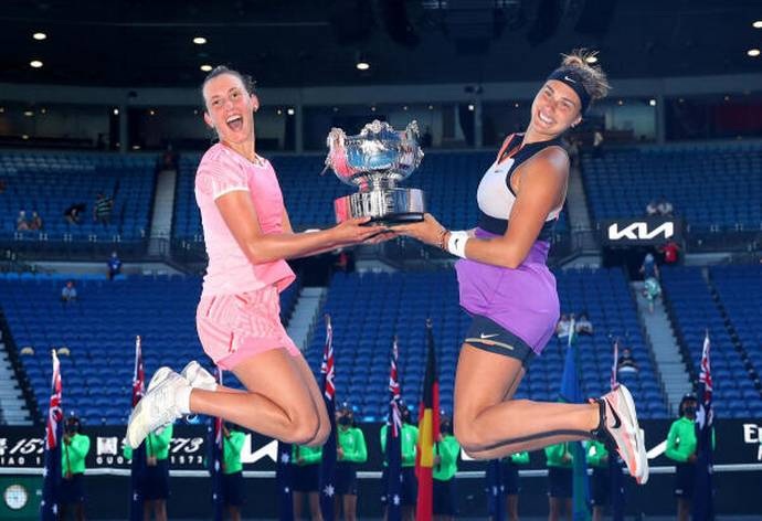 ମେଲବୋର୍ନ,୨୦।୨(ଏପି): ବର୍ଷର ପ୍ରଥମ ଗ୍ରାଣ୍ଡସ୍ଲାମ ଟୁର୍ନାମେଣ୍ଟ ଅଷ୍ଟ୍ରେଲିଆନ ଓପନ୍ରେ ଦ୍ୱିତୀୟ ସିଡ୍ ମାନ୍ୟତାପ୍ରାପ୍ତ ଯୋଡି ଏଲିସ ମେର୍ଟେନ୍ସ ଓ ଅରିନା ସାବାଲେଙ୍କା ମହିଳା ଡବଲ୍ସ ଟାଇଟଲ ଜିତିଛନ୍ତି। ବେଲଜିୟମର ମେର୍ଟେନ୍ସ ଓ ବେଲାରୁଷର ସାବାଲେଙ୍କା ଶୁକ୍ରବାର ଖେଳାଯାଇଥିବା ଫାଇନାଲ ମ୍ୟାଚ୍ରେ ତୃତୀୟ ସିଡ୍ ଯୋଡି ଚେକ୍ ଗଣରାଜ୍ୟର କାଟେରିନା ସିନିଆକୋଭା ଓ ବାର୍ବୋରା କ୍ରେଜସିକୋଭାଙ୍କୁ ୬-୨, ୬-୩ ସେଟ୍ରେ ଅତି ସହଜରେ ପରାସ୍ତ କରି ଚାମ୍ପିୟନ ହୋଇଛନ୍ତି।
