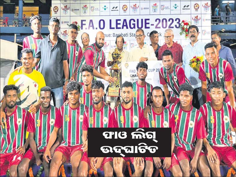 କଟକ,୬ା୭ (ସୁପ୍ରିୟା ପ୍ରିୟର୍ଶିନୀ): ଫୁଟବଲ ଆସୋସିଏଶନ ଅଫ୍ ଓଡ଼ିଶା (ଫାଓ) ଆନୁକୂଲ୍ୟରେ କଟକର ବାରବାଟୀ ଷ୍ଟାଡିୟମରେ ବୁଧବାର ଫୁଟବଲ ଲିଗ୍ ଉଦ୍ଘାଟିତ ହୋଇଛି। ଫାଓ ଲିଗ୍ ନାମରେ ପରିଚିତ ଏହି ପ୍ରତିଯୋଗିତାର ପ୍ରଥମ ମ୍ୟାଚ ଓଡ଼ିଶା ପୋଲିସ ଓ ସ୍ପୋଟର୍ସ ଓଡ଼ିଶା ମଧ୍ୟରେ ଅନୁଷ୍ଠିତ ହୋଇଥିଲା। ମ୍ୟାଚଟି ୪-୪ ଗୋଲରେ ଡ୍ର ରହିଥିଲା। ସ୍ପୋଟର୍ସ ଓଡ଼ିଶା ପକ୍ଷରୁ ରାଇସେନ ଟୁଡୁ ୧୩ ଓ ୨୮ତମ ମିନିଟରେ ୨ଟି ଏବଂ ଡି. ସଞ୍ଜୟ ୪୪ ଓ ରୋନିକ ମାଝି ୬୩ତମ ମିନିଟରେ ଗୋଟିଏ ଲେଖାଏ ଗୋଲ ଦେଇଥିଲେ। ଓଡ଼ିଶା ପୋଲିସ ଦଳର ଭୋଳେଶଙ୍କର ମାଝି ୨୬ ଓ ୩୨ ଏବଂ ବିଜୟ ବେହେରା ୪୮ ଓ ୭୧ତମ ମିନିଟରେ ୨ଟି ଲେଖାଏ ଗୋଲ ସ୍କୋର କରିଥିଲେ। ନିକଟରେ ଶେଷ ହୋଇଥିବା ଫାଓ ସୁପର କପ୍ର ପୁରସ୍କାର ମଧ୍ୟ ପ୍ରଦାନ କରାଯାଇଥିଲା। ଚାମ୍ପିୟନ ରାଇଜିଂ ଷ୍ଟାର ଦଳକୁ ଟ୍ରଫି ସହ ୧,୦୦,୦୦୦ଟଙ୍କା ଏବଂ ରନରଅପ୍ ବିଡ଼ାନାସୀ ଦଳକୁ ୫୦,୦୦୦ଟଙ୍କା ପ୍ରଦାନ କରାଯାଇଥିଲା। କଟକ ଜିଲାପାଳ ଭବାନୀ ଶଙ୍କର ଚୟନି ମୁଖ୍ୟ ଅତିଥିଭାବେ ଯୋଗଦେଇ ପୁରସ୍କାର ପ୍ରଦାନ କରିଥିଲେ। ଫାଓ ସମ୍ପାଦକ ଆଶୀର୍ବାଦ ବେହେରା, ଉପସଭାପତି ବିଜୟ ଦାସ, ଦିଲୀପ କୁମାର ସାହୁ, କୋଷାଧ୍ୟକ୍ଷ ଭକ୍ତବଲ୍ଲଭ ଦାସ, ଯୁଗ୍ମ ସମ୍ପାଦକ ଅଭିଜିତ ପାଲ୍, ବିଶ୍ୱ ରଞ୍ଜନ ଘଡ଼େଇ, ଫାଓ ମହିଳା କମିଟି ଚେୟାରମ୍ୟାନ ସହଦେବ ରାଉତ ପ୍ରମୁଖ ଉପସ୍ଥିତ ଥିଲେ।