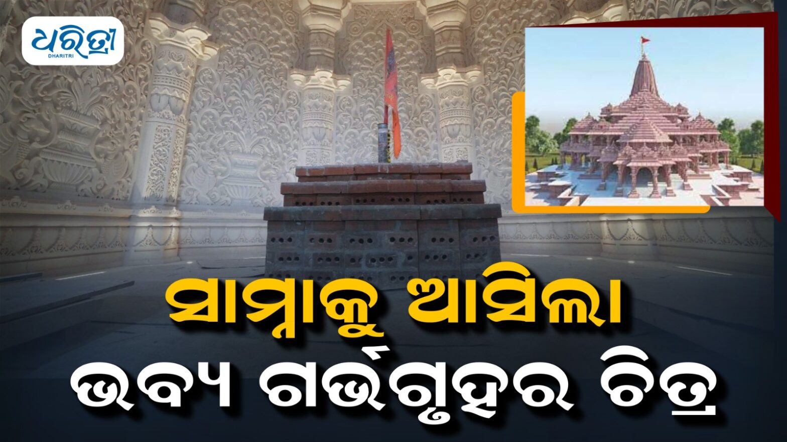ନୂଆଦିଲ୍ଲୀ, ୯।୧୨: ଆସନ୍ତା ମାସରେ ଅଯୋଧ୍ୟା ରାମ ମନ୍ଦିରରେ ଭଗବାନଙ୍କ ମୂର୍ତ୍ତିରେ ପ୍ରାଣ ପ୍ରତିଷ୍ଠା ପୂର୍ବରୁ ଗର୍ଭଗୃହ କାର୍ଯ୍ୟ ଦ୍ରୁତ ଗତିରେ ଚାଲିଛି। ଏହାରି ମଧ୍ୟରେ ପ୍ରଥମ ଚିତ୍ର ସାମ୍ନାକୁ ଆସିଛି, ଯେଉଁଥିରେ ଭବ୍ୟ ଗର୍ଭଗୃହର କାନ୍ଥ ଏବଂ ଗମ୍ବୁଜରେ ସୁନ୍ଦର ଖୋଦିତ କଳାକୃତି ଦେଖିବାକୁ ମିଳୁଛି। ମନ୍ଦିର ଟ୍ରଷ୍ଟର ଅଧିକାରୀ ଏହି ଚିତ୍ର ପ୍ରକାଶ କରିଛନ୍ତି।