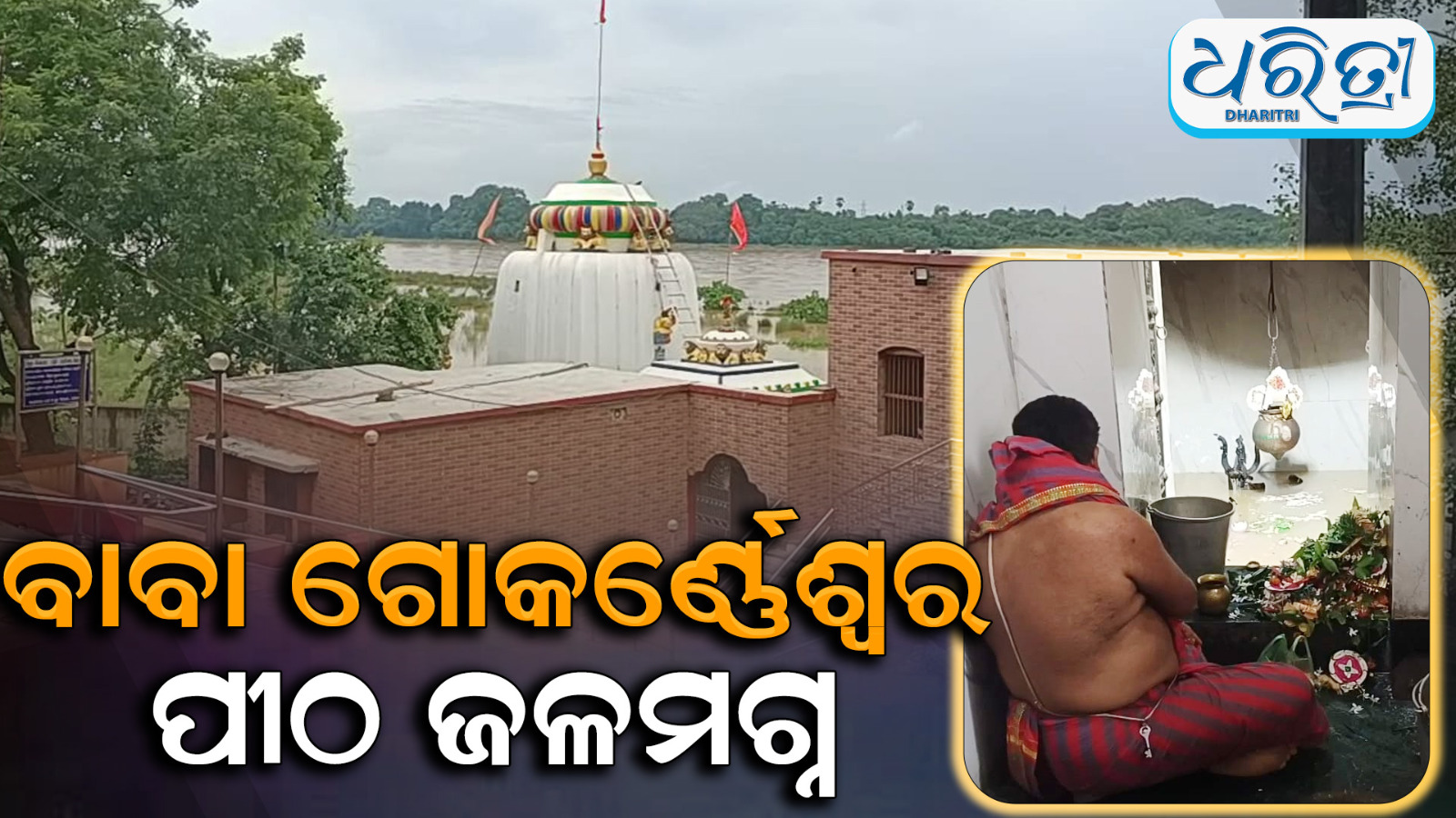 ଧର୍ମଶାଳା,୮।୭(ଶିବ ପ୍ରସାଦ ମହାନ୍ତି): ଯାଜପୁର ଜିଲା ଷୋହଳ ନମ୍ବର ଜାତୀୟ ରାଜପଥ ଜାରକା ଅଞ୍ଚଳର ବହୁ ପୁରାତନ ପୀଠ ବାବା ଗୋକର୍ଣ୍ଣେଶ୍ୱରଙ୍କ ପୀଠରେ ବନ୍ୟା ଜଳ ପ୍ରବାହିତ ହେଉଥିବାବେଳେ ଜଳମଗ୍ନ ମଧ୍ୟରେ ବାବା ଗୋକର୍ଣ୍ଣେଶ୍ୱର ଶିବଲିଙ୍ଗ ପୁଜା ପାଉଛନ୍ତି। ଲଗାଣ ବର୍ଷା ପ୍ରଭାବରେ ବିଭିନ୍ନ ନଦୀରେ ଜଳସ୍ତର ବୃଦ୍ଧି ପାଉଛି। ଏହା ମଧ୍ୟରେ ଯାଜପୁର ଜିଲାରେ ମଧ୍ୟ ନଦୀ ଗୁଡ଼ିକରେ ଜଳସ୍ତର ବୃଦ୍ଧି ପାଇଛି।