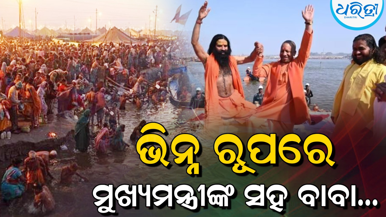 ପ୍ରୟାଗରାଜ,୨୭।୧: ସୋମବାର ଉତ୍ତର ପ୍ରଦେଶ ମୁଖ୍ୟମନ୍ତ୍ରୀ ଯୋଗୀ ଆଦିତ୍ୟନାଥ ଏବଂ ଯୋଗଗୁରୁ ବାବା ରାମଦେବ ପ୍ରୟାଗରାଜ ମହାକୁମ୍ଭରେ ପହଞ୍ଚିଥିଲେ। ସେ ତ୍ରିବେଣୀ ସଙ୍ଗମରେ ପବିତ୍ର ସ୍ନାନ କରିଥିଲେ। ଏହି ସମୟରେ ମୁଖ୍ୟମନ୍ତ୍ରୀ ଯୋଗୀ ଆଦିତ୍ୟନାଥ ଏବଂ ବାବା ରାମଦେବଙ୍କ ଏକ ଭିନ୍ନ ରୂପ ଦେଖିବାକୁ ମିଳିଥିଲା।