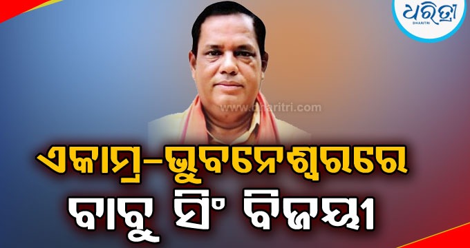 ଭୁବନେଶ୍ୱର,୪ା୬(ଅସମାପିକା ସାହୁ): ଭୁବନେଶ୍ୱର ଏକାମ୍ର ନିର୍ବାଚନ ମଣ୍ଡଳୀର ଭାଜପା ପ୍ରାର୍ଥୀ ବାବୁ ସିଂ ବିଜୟୀ ହୋଇଛନ୍ତି। ବାବୁ ସିଂ ୭୪୩୯୯ ଭୋଟ ପାଇଛନ୍ତି। ତାଙ୍କର ନିକଟତମ ପ୍ରତିନ୍ଦ୍ୱନ୍ଦ୍ୱୀ ବିଜେଡି ପ୍ରାର୍ଥୀ ଅଶୋକ ଚନ୍ଦ୍ର ପଣ୍ଡା ୬୯୪୨୯ ଭୋଟ ପାଇ ପଛୁଆ ଅଛନ୍ତି।