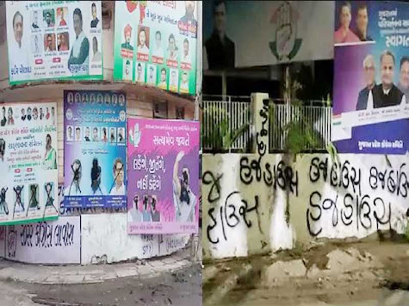 ଏକ ଭିଡିଓରେ ଦର୍ଶାଯାଇଛି ଯେ ଗୁଜୁରାଟ କଂଗ୍ରେସ ମୁଖ୍ୟାଳୟର କାନ୍ଥରେ ସ୍ପ୍ରେ ରଙ୍ଗ ବ୍ୟବହାର କରି ବିକ୍ଷୋଭକାରୀମାନେ ହଜ ହାଉସ ଲେଖିଛନ୍ତି ଏବଂ ପରିସରରେ ରଖାଯାଇଥିବା ବ୍ୟାନରରେ ବିଭିନ୍ନ କଂଗ୍ରେସ ନେତାଙ୍କ ଫଟୋ ବିକୃତ କରିଛନ୍ତି।
