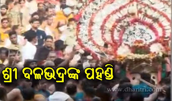 ପୁରୀ ଅଫିସ,୧ା୭: ବିଶ୍ୱ ପ୍ରସିଦ୍ଧ ରଥଯାତ୍ରା ନେଇ ପ୍ରଭୁ ବଳଭଦ୍ରଙ୍କ ପହଣ୍ଡି ଆରମ୍ଭ ହୋଇଛି। ପ୍ରଥମେ ଚକ୍ରରାଜ ସୁଦର୍ଶନଙ୍କ ପହଣ୍ଡି ହୋଇଥିଲା। ପ୍ରଭୁ ସୁଦର୍ଶନ ରଥାରୂଢ଼ ହେବା ପରେ ଏବେ ବଳଭଦ୍ରଙ୍କ ପହଣ୍ଡି ଆରମ୍ଭ ହୋଇଛି।
