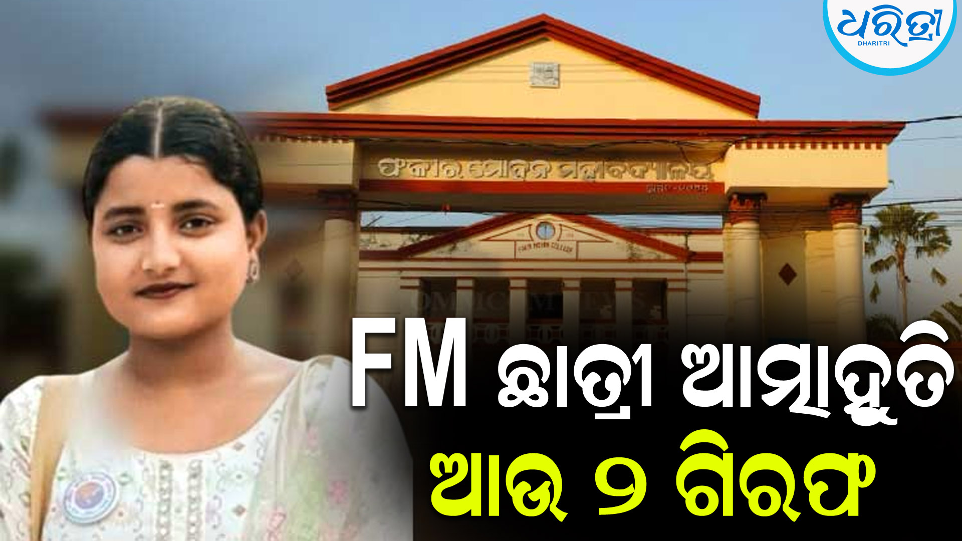ବାଲେଶ୍ୱର,୪।୮: ବାଲେଶ୍ବର FM ଛାତ୍ରୀ ଆତ୍ମାହୁତି ଘଟଣାରେ ୨ ଜଣଙ୍କୁ କ୍ରାଇମବ୍ରାଞ୍ଚ ଗିରଫ କରିଛି। ଗିରଫଙ୍କ ମଧ୍ୟରେ ଜଣେ ଛାତ୍ର ଓ ଜଣେ ଅଣଛାତ୍ର ରହିଛନ୍ତି। ସେମାନେ ହେଲେ ଛାତ୍ରୀଙ୍କୁ ଉଦ୍ଧାର କରିଥିବା ଜ୍ୟୋତି ପ୍ରକାଶ ବିଶ୍ବାଳ ଓ ଶୁଭ୍ର ସମ୍ବିତ ନାୟକ। ଉଭୟଙ୍କୁ କୋର୍ଟ ଚାଲାଣ କରାଯାଇ ୧୫ ଦିନିଆ ବିଚାର ବିଭାଗୀୟ ହାଜତକୁ ପଠାଯାଇଛି। ଫଳରେ ଏହି ଘଟଣାରେ ମୋଟ ଗିରଫଦାରୀ ସଂଖ୍ୟା ୪ରେ ପହଞ୍ଚିଛି।