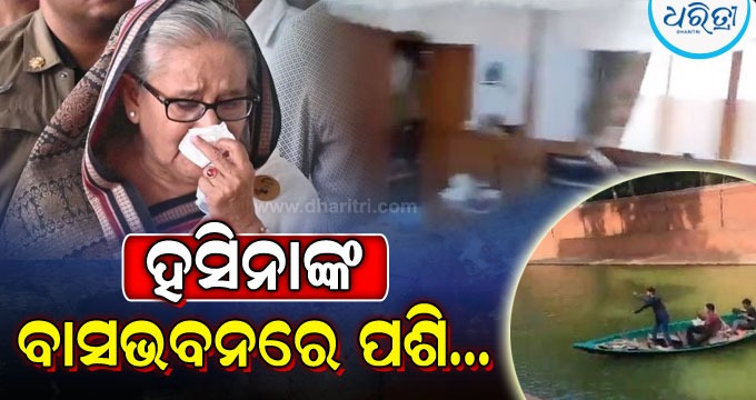 ଶେଖ ହସିନାଙ୍କ ଇସ୍ତଫା ପରେ ବିକ୍ଷୋଭକାରୀମାନେ ଢାକାରେ ପ୍ରଧାନମନ୍ତ୍ରୀଙ୍କ ବାସଭବନରେ ପ୍ରବେଶ କରିଛନ୍ତି। ବିକ୍ଷୋଭକାରୀମାନେ ପ୍ରଧାନମନ୍ତ୍ରୀଙ୍କ ବାସଭବନରେ ଭଙ୍ଗାରୁଜା କରି ଜିନିଷପତ୍ର ନେଇଯାଉଛନ୍ତି। ଏଥିସହ ଘରେ ପଶି ଖଟ ଉପରେ ଶୋଇ ଭିଡିଓ କରୁଥିବା ନଜର ଆସିଛନ୍ତି।