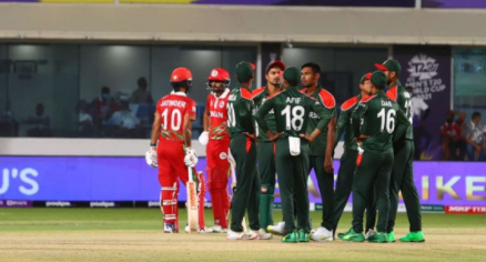 ଅଲ ଅମରାଟ୍,୧୯।୧୦: ଚଳିତ ଟି୨୦ ବିଶ୍ୱକପ୍ ଲାଗି ଚାଲିଥିବା ଯୋଗ୍ୟତା ପର୍ଯ୍ୟାୟ ଇଭେଣ୍ଟରେ ଓମାନକୁ ୨୬ ରନ୍ରେ ହରାଇ ଦେଇଛି ବାଂଲାଦେଶ। ବିଶ୍ୱ ଟି୨୦ ଦଳଗତ ମାନ୍ୟତାରେ ୬ଷ୍ଠ ସ୍ଥାନରେ ଥିବା ବାଂଲାଦେଶ ପାଇଁ ଏହା ବଡ଼ କଥା ନୁହେଁ। କିନ୍ତୁ ମ୍ୟାଚ୍ରେ ଏକଦା ଏଭଳି ସ୍ଥିତି ସୃଷ୍ଟି ହୋଇଥିଲା, ଯେଉଁଠାରେ ଓମାନ ଶକ୍ତିଶାଳୀ ବାଂଲାଦେଶଠାରୁ ଖୁବ୍ ଆଗରେ ମନେ ହେଉଥିଲା।