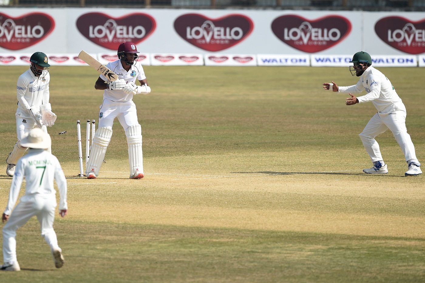 (ବ୍ରାଥଓ୍ବେଟ- ୭୬, ବ୍ଲାକ୍ଉଡ- ୬୮, ଡା ସିଲଭା- ୪୨, ମେୟେର୍ସ- ୪୦, ମିରାଜ- ୪/୫୮, ମୁସ୍ତାଫିଜୁର- ୨/୪୬, ତାଇଜୁଲ-୨/ ୮୪, ନୟିମ- ୨/୫୪)।