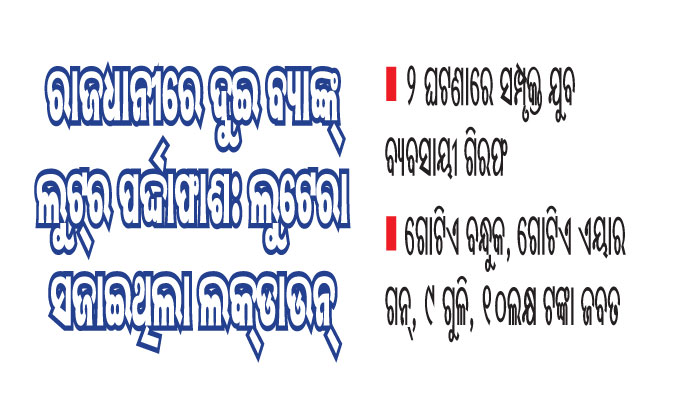 ଭୁବନେଶ୍ୱର,୬।୧୦ (ବ୍ୟୁରୋ): ରାଜଧାନୀ ଉପକଣ୍ଠ ନନ୍ଦନବିହାର ଓ ବରିମୁଣ୍ଡା ବ୍ୟାଙ୍କ୍ ଲୁଟ୍ ଘଟଣା ପର୍ଦ୍ଦାଫାଶ କରିଛି କମିଶନରେଟ ପୋଲିସ। ଏହି ଦୁଇ ଘଟଣାରେ ଜଣେ ହିଁ ସମ୍ପୃକ୍ତ ଥିବା ଜଣାପଡିଛି। ସେ ହେଲେ ମଞ୍ଚେଶ୍ୱର ଥାନା ଅନ୍ତର୍ଗତ ଟାଙ୍ଗୀବନ୍ତ ଗଁାର ଶିକ୍ଷିତ ବ୍ୟବସାୟୀ ସୌମ୍ୟରଞ୍ଜନ ଜେନା(୨୫)। ତାଙ୍କ ନିକଟରୁ ପୋଲିସ ଗୋଟିଏ ଅସଲି ବନ୍ଧୁକ, ୯ଟି ଗୁଳି, ଗୋଟିଏ ଏୟାର ଗନ୍,୧୦ ଲକ୍ଷ ଟଙ୍କା, ଲୁଟ୍ ସମୟରେ ବ୍ୟବହାର କରିଥିବା ସ୍କୁଟି, ଜୋତା, ଗ୍ଲୋଭ୍ସ, ହେଲ୍ମେଟ୍ ଓ ବ୍ଲାକ୍ ଶାର୍ଟକୁ ଜବତ କରିଛି। ପଚରାଉଚରା ପରେ ତାଙ୍କୁ ଭୁବନେଶ୍ୱର ଏସ୍ଡିଜେଏମ୍ କୋର୍ଟରେ ହାଜର କରାଯାଇଥିଲା। ଜାମିନ ନାମଞ୍ଜୁର ହେବାରୁ ତାଙ୍କୁ ବିଚାର ବିଭାଗୀୟ ହାଜତକୁ ପଠାଇ ଦିଆଯାଇଛି। ଲକ୍ଡାଉନ ପାଇଁ ବ୍ୟବସାୟରେ କ୍ଷତି ଓ ଋଣ ବୋଝ ସୌମ୍ୟଙ୍କୁ ଲୁଟେରା ସଜାଇ ଦେଇଛି। ଅଭିଯୁକ୍ତ ଜଣକ ବ୍ୟାଙ୍କ ଋଣ ଶୁଝିବା ପାଇଁ ଏପରି ଲୁଟ୍ କରିଥିବା ପୋଲିସ କମିଶନର ସୁଧାଂଶୁ ଷଡ଼ଙ୍ଗୀ ସୋମବାର ଖବରଦାତା ସମ୍ମଳନୀରେ ସୂଚନା ଦେଇଛନ୍ତି।