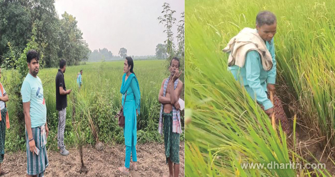 ଭଞ୍ଜନଗର,୯।୧୦(ବାବୁଲା ପ୍ରଧାନ): ଆଜକୁ ଦୁଇ ମାସ ହେବ ଗଞ୍ଜାମ ଜିଲା ଭଞ୍ଜନଗର ଅଞ୍ଚଳରେ ବାରମ୍ବାର ବର୍ଷା ହେଉଛି। ଏହାଦ୍ବାରା ଧାନ ଫସଲ ହୋଇଥିଲା। କିନ୍ତୁ ଅତ୍ୟଧିକ ବର୍ଷା ଯୋଗୁ ବିଗତ କିଛି ଦିନ ହେବ ଧାନ ଫସଲରେ ମାଟିଆଗୁଣ୍ଡି ଓ ଜଉ ପୋକ ଲାଗୁଥିବା ଦେଖା ଯାଇଛି। ଏହା ଧିରେ ଧିରେ ବୃଦ୍ଧି ପାଉଛି। ବର୍ତ୍ତମାନ ଧାନ ଗଛରେ ପୂଡା ଧରିବା ସମୟ। ଏହି ସମୟରେ ରୋଗ ପୋକ ଲାଗିବ ତେବେ ଫସଲ କ୍ଷତିଗ୍ରସ୍ତ ହେବାର ସମ୍ଭାବନା ରହିଛି। ତେଣୁ ବିଭାଗୀୟ ଉଚ୍ଚ କର୍ତ୍ତୃପକ୍ଷ ଏଥିପ୍ରତି ଦୃଷ୍ଟି ଦେଇ ଆବଶ୍ୟକ ପଦକ୍ଷେପ ନେବା ପାଇଁ ସାଧାରଣରେ ଦାବୀ ହୋଇଛି । ଏହିଭଳି ପରିସ୍ଥିତିରେ ଗୁରୁବାର ଅପରାହ୍ନରେ ଭଞ୍ଜନଗର ବ୍ଲକ ସାନକୋଦଣ୍ଡା ଗ୍ରାମ୍ୟ କୃଷି ଅଧିକାରୀ ବିଷ୍ଣୁ ଚରଣ ବେହେରା,ସହକାରୀ କୃଷି ଅଧିକାରୀ ସୁମୀନ ସାହୁ ବିଭିନ୍ନ ଗ୍ରାମରେ କ୍ଷେତ୍ର ପରିଦର୍ଶନ ସହ ଚାଷୀଙ୍କୁ ଔଷଧ ପକାଇବାକୁ ପରାମର୍ଶ ଦେଇଛନ୍ତି। ଯୋଗୀମାରି ଗ୍ରାମର ଚାଷୀ ଦିବାକର ବିଷୋୟୀ, ଶଙ୍କର ପ୍ରଧାନ, ବଳରାମ ନାୟକ,ଭଂଜ ପ୍ରଧାନ, ସୁଶାନ୍ତ କୁମାର ପ୍ରଧାନ,ଜୟ ପ୍ରଧାନ,ସୂର୍ଯ୍ୟ ରାଉତ, ଟୁନା ପ୍ରଧାନ,ଲିଙ୍ଗରାଜ ନାୟକ,ଭଗବାନ ପ୍ରଧାନ, ଜଗତ ନାୟକ,ଧନୁ ନାୟକ, ବିନାୟକ ପ୍ରଧାନ ପ୍ରମୁଖଙ୍କ ଜମିରେ ଏହି ରୋଗ ବ୍ୟାପିଛି ।