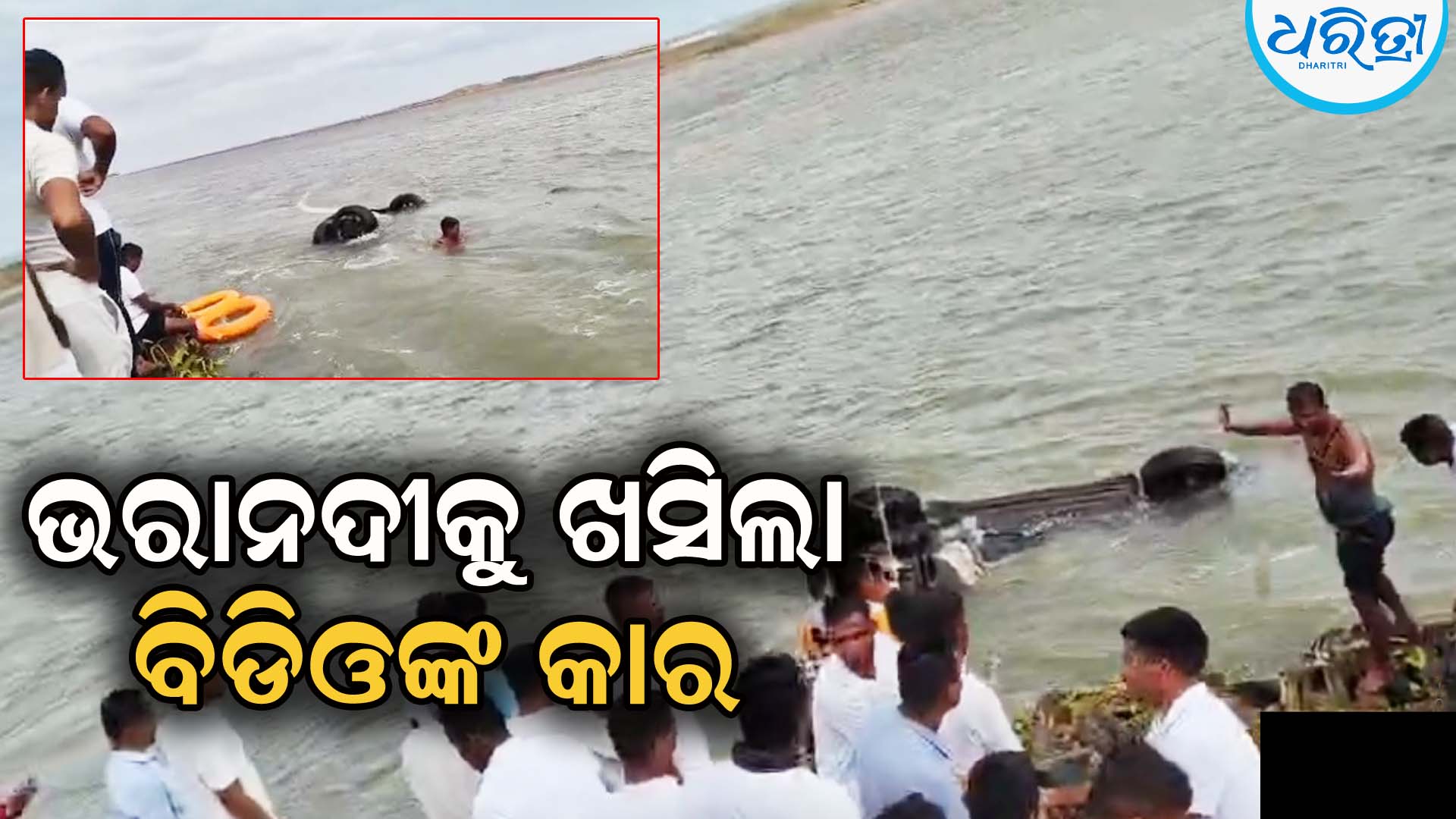 କୋଣାର୍କ,୨୬ା୭(ଜ୍ୟୋତିରାଜ ମହାନ୍ତି): ପୁରୀ-କୋଣାର୍କ ବେଳାମାର୍ଗ ଚନ୍ଦ୍ରଭାଗା ମେରାଇନ ଥାନା ଅନ୍ତର୍ଗତ ଲୋଟସ ରିସର୍ଟ ନିକଟ ରାମଚଣ୍ଡୀ ମୁହାଣ କୁଶଭଦ୍ରା ନଦୀରେ କାର ବୁଡି ଯାଇଥିଲା। କଟକ ସଦର ବିଡିଓ ପ୍ରତୀକ ସାହୁ (୩୩)ଓ ତାଙ୍କ ସ୍ତ୍ରୀ ରଶ୍ମୀ ସାହୁଙ୍କ ସହ ଶନିବାର କୋଣାର୍କ ବୁଲିବାକୁ ଆସିଥିଲେ। ରାମଚଣ୍ଡୀ ନିକଟ ଲୋଟସ ରିସର୍ଟରେ କାର ଯାହାର ନମ୍ବର ଓ ବି ୨୩୫୭ ପାର୍କିଂ ସମୟରେ ଭାରସାମ୍ୟ ହରାଇ କୁଶଭଦ୍ରାକୁ ଖସି ପଡ଼ିଥିଲା। ନଦୀରେ ଜୁଆର ଥିବାରୁ ଗାଡ଼ିଟି ସମ୍ପୂର୍ଣ୍ଣ ଭାସୁଥିବା ଦେଖିବାକୁ ମିଳିଥିଲା। ଖବରପାଇ ଅଗ୍ନିଶମ ବାହିନୀ କାରକୁ ଉଦ୍ଧାର କରିଥିଲେ। ଏଥିରେ ବିଡିଓ ସାମାନ୍ୟ ଆହତ ହୋଇ ପ୍ରଥମେ କୋଣାର୍କ ସ୍ବାସ୍ଥ୍ୟ କେନ୍ଦ୍ର ପରେ ପୁରୀ ଯାଇଥିବା ଜଣାପଡ଼ିଛି। ଘଟଣାସ୍ଥଳରେ ମେରାଇନ ପୋଲିସ ପହଞ୍ଚି ତଦନ୍ତ କରୁଥିବା ଥାନାଧିକାରିଣୀ ପ୍ରତିମା ସାହୁ ପ୍ରକାଶ କରିଛନ୍ତି।