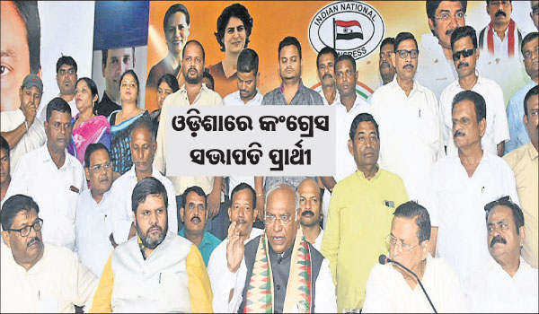 ଭୁବନେଶ୍ବର,୧୫।୧୦(ବ୍ୟୁରୋ): ଅଖିଳ ଭାରତ କଂଗ୍ରେସ କମିଟି(ଏଆଇସିସି) ସଭାପତି ପଦ ପାଇଁ ପ୍ରତିଦ୍ୱନ୍ଦ୍ୱିତା କରୁଥିବା ଏମ୍ପି ମଲ୍ଲିକାର୍ଜୁନ ଖାର୍ଗେ ଶୁକ୍ରବାର ଦ୍ୱିପ୍ରହର ସମୟରେ ଓଡ଼ିଶା ଗସ୍ତରେ ଆସି ପ୍ରଦେଶ କଂଗ୍ରେସ କାର୍ଯ୍ୟାଳୟରେ ପିସିସି ସଭ୍ୟମାନଙ୍କ ସହ ବୈଠକ କରିଛନ୍ତି। ଏହି ଅବସରରେ ସେ ନିଜର ପ୍ରାର୍ଥିତ୍ୱ ସମ୍ପର୍କରେ ଅବତାରଣା କରିବା ସହ ସମସ୍ତଙ୍କୁ ଭୋଟ ଭିକ୍ଷା କରିଛନ୍ତି। ବୈଠକ ପରେ ସେ ପ୍ରଦେଶ କଂଗ୍ରେସ କାର୍ଯ୍ୟାଳୟରେ ଏକ ଖବରଦାତା ସମ୍ମିଳନୀ କରି ତାଙ୍କ ଗସ୍ତ ସମ୍ପର୍କରେ କହିଛନ୍ତି। ଖାର୍ଗେଙ୍କ ସହ ଏଆଇସିସିର ପୂର୍ବତନ ମୁଖପାତ୍ର ଗୌରବ ବଲ୍ଲଭ ମଧ୍ୟ ଉପସ୍ଥିତ ରହିଥିଲେ।