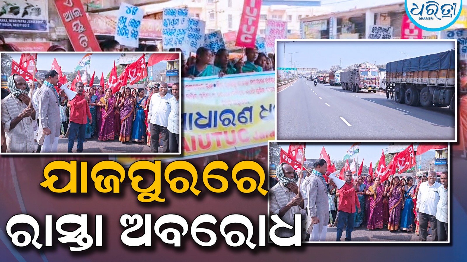 ଧର୍ମଶାଳା,୧୨ା୨(ଶିବପ୍ରସାଦ ମହାନ୍ତି): ଯାଜପୁର ଜିଲାର ବିଭିନ୍ନ ସ୍ଥାନରେ ଭାରତ ବନ୍ଦର ପ୍ରଭାବ ଦେଖିବାକୁ ମିଳୁଛି । ଷୋହଳ ନମ୍ବର ଜାତୀୟ ରାଜପଥର ଚଣ୍ଡିଖୋଲ ଛକ ନିକଟରେ ବିଭିନ୍ନ ଟ୍ରେଡ ୟୁନିୟନ ପକ୍ଷରୁ ଶତାଧିକ କାର୍ଯ୍ୟକର୍ତ୍ତାମାନେ ରାସ୍ତା ଅବରୋଧ କରି କେନ୍ଦ୍ର ସରକାର ବିରୁଦ୍ଧରେ ନାରା ବାଜି କରିଛନ୍ତି । ସେହିପରି ଜରକା ଛକରେ ମଧ୍ୟ ବିଭିନ୍ନ ଶ୍ରମିକ ସଂଗଠନ ପକ୍ଷରୁ ସାଧାରଣ ଧର୍ମଘଟ ଡାକରା ଦିଆଯାଇଛି ।