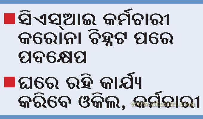 ଭୁବନେଶ୍ୱର, ୪। ୮ (ବ୍ୟୁରୋ): ଭୁବନେଶ୍ୱର କୋର୍ଟରେ କାର୍ଯ୍ୟରତ ଜଣେ ସିଏସ୍‌ଆଇ କର୍ମଚାରୀ କରୋନା ପଜିଟିଭ ଚିହ୍ନଟ ହୋଇଛନ୍ତି। ଏହା ପରେ କୋର୍ଟ ପରିସରକୁ ସାନିଟାଇଜ୍‌ କରାଯାଉଛି। ଏଥିସସହ ସଂକ୍ରମଣ ରୋକିବା ପାଇଁ ପଦକ୍ଷେପ ନିଆଯାଇଛି। କୋର୍ଟକୁ କେହି ନ ଆସିବାକୁ ପରାମର୍ଶ ଦିଆଯାଇଛି। ଖୋର୍ଦ୍ଧା ସିଭିଲ୍‌ କୋର୍ଟ ରେଜିଷ୍ଟ୍ରାର୍‌ ଏ ନେଇ ଭୁବନେଶ୍ୱର ବାର୍‌ ଆସୋସିଏଶନକୁ ଚିଠି ଲେଖିଛନ୍ତି। ଓକିଲ, ଜୁଡିସିଆଲ ଅଫିସର, କୋର୍ଟ ଷ୍ଟାପ୍‌, ମକଦ୍ଦମାକାରୀ ଓ ଅନ୍ୟମାନଙ୍କୁ କୋର୍ଟ ଆସିବାକୁ ମନା କରାଯାଇଛି। ସମସ୍ତ କୋର୍ଟ କାର୍ଯ୍ୟକୁ ଭିଡ଼ିଓ କନ୍‌ଫରେନ୍ସିଂ ଓ ଭର୍ଚୁଆଲ ମାଧ୍ୟମରେ ଶୁଣାଣି କରିବାକୁ ରେଜିଷ୍ଟ୍ରାର କହିଛନ୍ତି। ଯଦି କେହି ଅତି ଗୁରୁତ୍ୱପୂର୍ଣ୍ଣ କାର୍ଯ୍ୟରେ ଆସୁଛନ୍ତି ସେମାନେ କୋର୍ଟ ପରିସରରେ ଏକାଠି ଛିଡା ନ ହୋଇ ସାମାଜିକ ଦୂରତା ରଖି ନିଜ କାର୍ଯ୍ୟ ଶେଷ କରି ଯଥା ସମ୍ଭବ ଶୀଘ୍ର ଚାଲିଯିବାକୁ ପରାମର୍ଶ ଦିଆଯାଇଛି। ଅନ୍ୟପଟରେ ଉକ୍ତ ସିଏସ୍‌ଆଇ କର୍ମଚାରୀ ଜଣକ କୋର୍ଟରେ କାହା ସହ ମିଶିଛନ୍ତି ସେନେଇ ବିଏମ୍‌ସି ଓ ଡାକ୍ତରୀ ଟିମ୍‌ ଟ୍ରେସ୍‌ କରୁଛନ୍ତି। ତାଙ୍କ ସଂସ୍ପର୍ଶରେ ଆସିଥିଲେ କ୍ୱାରାଣ୍ଟାଇନ୍‌ରେ ରହିବାକୁ ପରାମର୍ଶ ଦିଆଯାଇଛି।