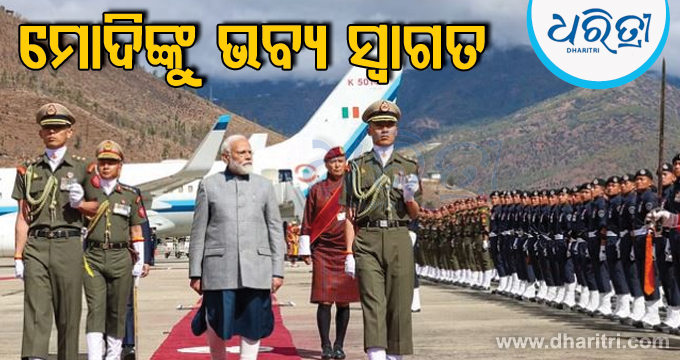 ଥିମ୍ପୁ,୨୨।୩: ଦୁଇ ଦିନିଆ ଗସ୍ତରେ ପ୍ରଧାନମନ୍ତ୍ରୀ ନରେନ୍ଦ୍ର ମୋଦି ଭୁଟାନ ଗସ୍ତରେ ଅଛନ୍ତି। ପ୍ରଧାନମନ୍ତ୍ରୀ ଶୁକ୍ରବାର ସକାଳେ ନୂଆଦିଲ୍ଲୀରୁ ଭୁଟାନର ରାଜଧାନୀ ଥିମ୍ଫୁକୁ ଯାଇ କିଛି ଘଣ୍ଟା ପରେ ଭୁଟାନରେ ପହଞ୍ଚିଥିଲେ। ପ୍ରଧାନମନ୍ତ୍ରୀଙ୍କ ଭୁଟାନ ଗସ୍ତକୁ ନେଇ ସେଠାକାର ଲୋକମାନେ ବହୁତ ଖୁସି ଅଛନ୍ତି ଏବଂ ମୋଦିଙ୍କୁ ସ୍ବାଗତ କରିବା ପାଇଁ ଥିମ୍ଫୁ ରାସ୍ତାରେ ବିଭିନ୍ନ ସ୍ଥାନରେ ଠିଆ ହୋଇଥିବା ଲୋକଙ୍କୁ ଦେଖି ସେମାନଙ୍କ ଖୁସିକୁ ସହଜରେ ଅନୁମାନ କରାଯାଇ ପାରୁଥିଲା।
